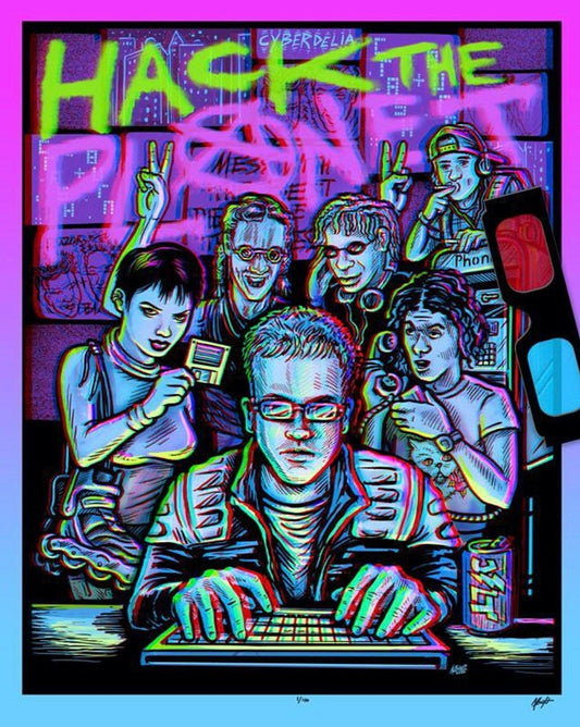 HACK THE PLANET!! 3D Hackers Movie Poster with Glasses - Signed Archival Anaglyph Illustration Print