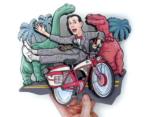 Pee Wee's Bike & Dinosaurs Woodcut - 3D Layered Wall Art