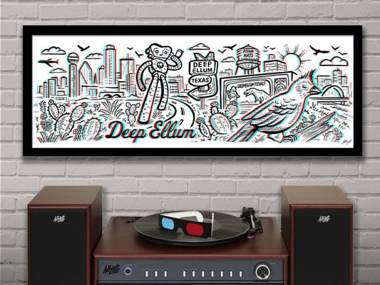DEEP ELLUM TX - Old School 3D Panoramic Poster with red/blue Glasses - 11.75x36" - Signed Limited Edition Art Print