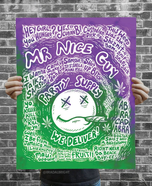 Mr Nice Guy Party Supply Blacklight Poster - Half Baked Movie Quote Illustration - Signed by the Artist
