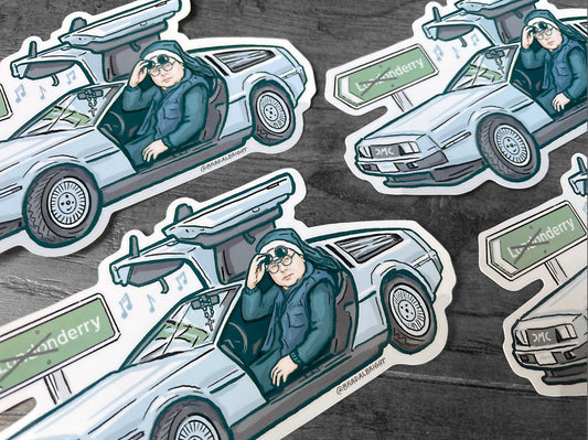 Sister Michael's Car - Stickers & Magnets - Derry Girls Delorean Illustration - Waterproof Decals