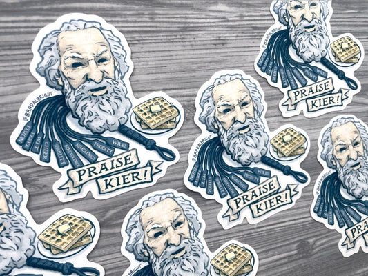 Praise Kier! - Waffle Party Whip & Mask - Severance Magnets and Waterproof Sticker Decals