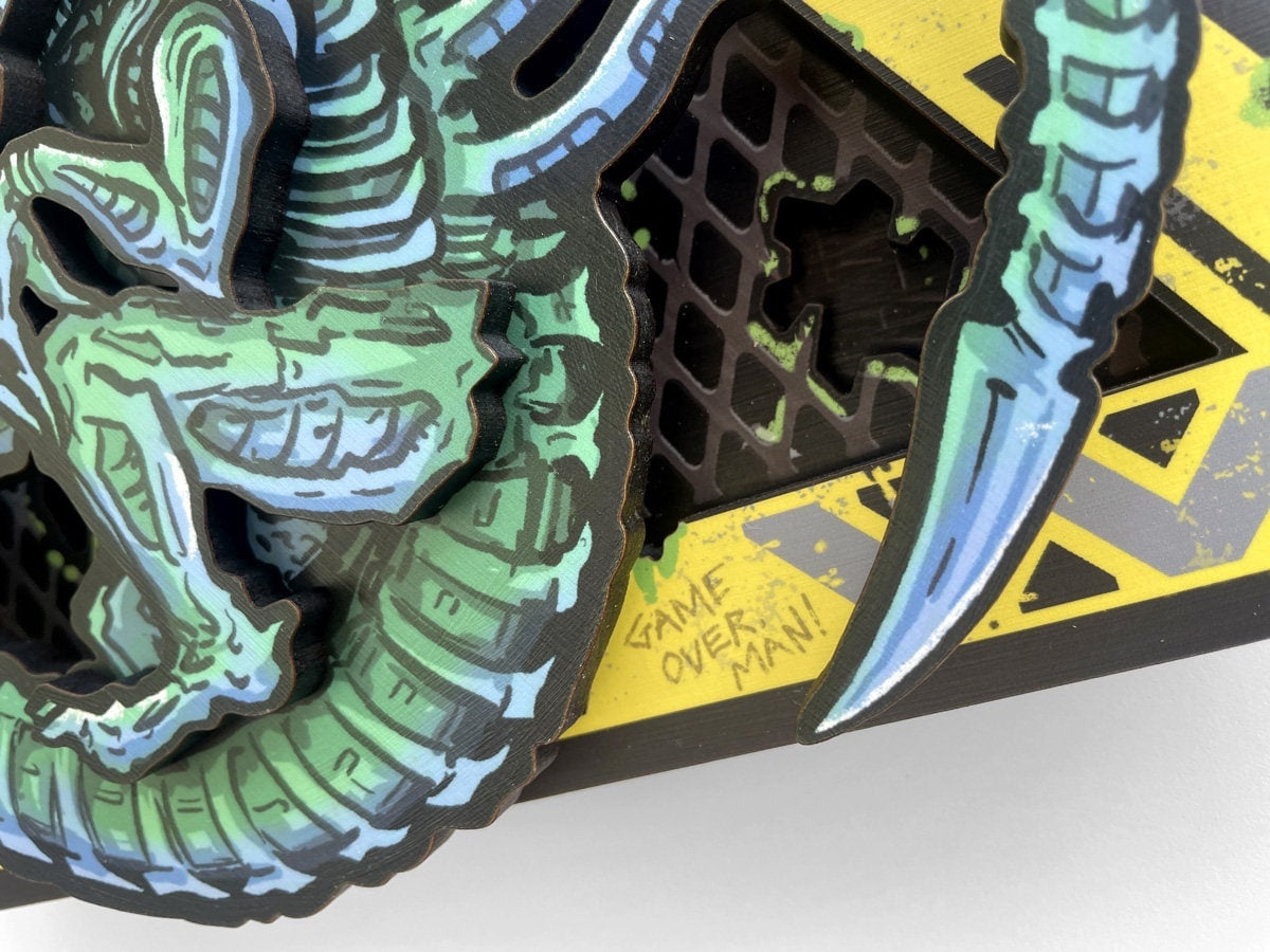 This uniquely interactive 3D wall sculpture honors the lasting influence and inspiration of the Alien universe.