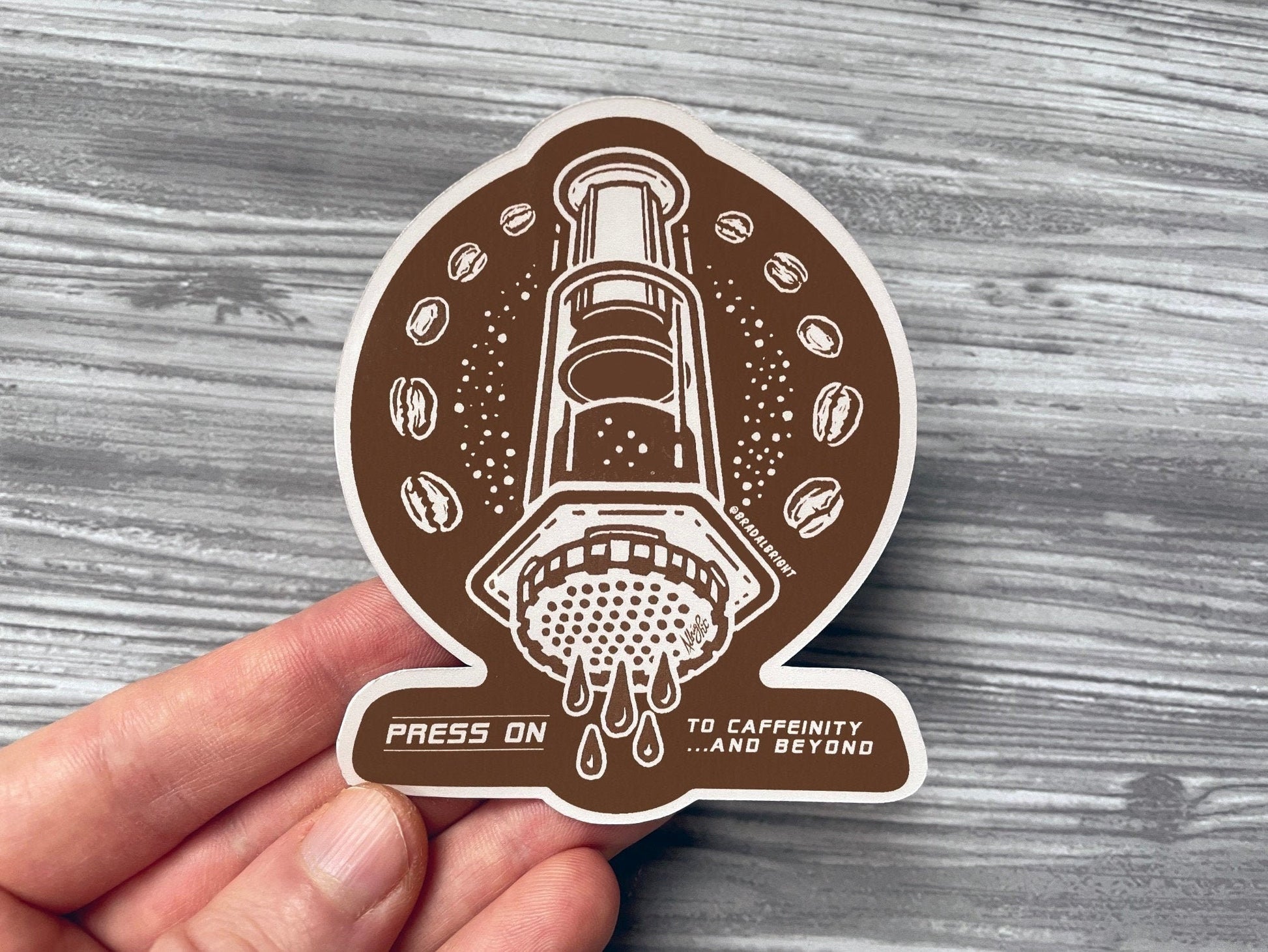 Water resistant sticker decals and flexible magnets, perfect for your Aeropress, mug, car, phone, notebook, etc!