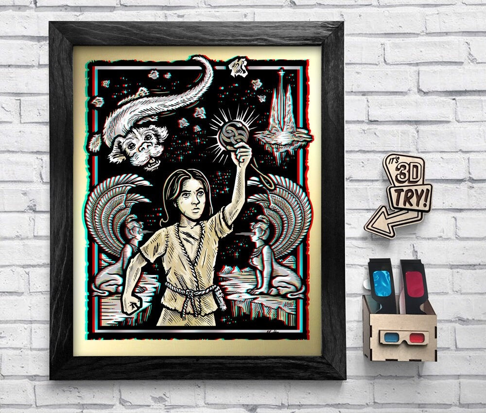Armed with nothing but The Auryn to guide and protect him, Atreyu embarks upon his quest... to defeat The Nothing. Illustrated Fan Poster in 3D with included red/blue glasses.
