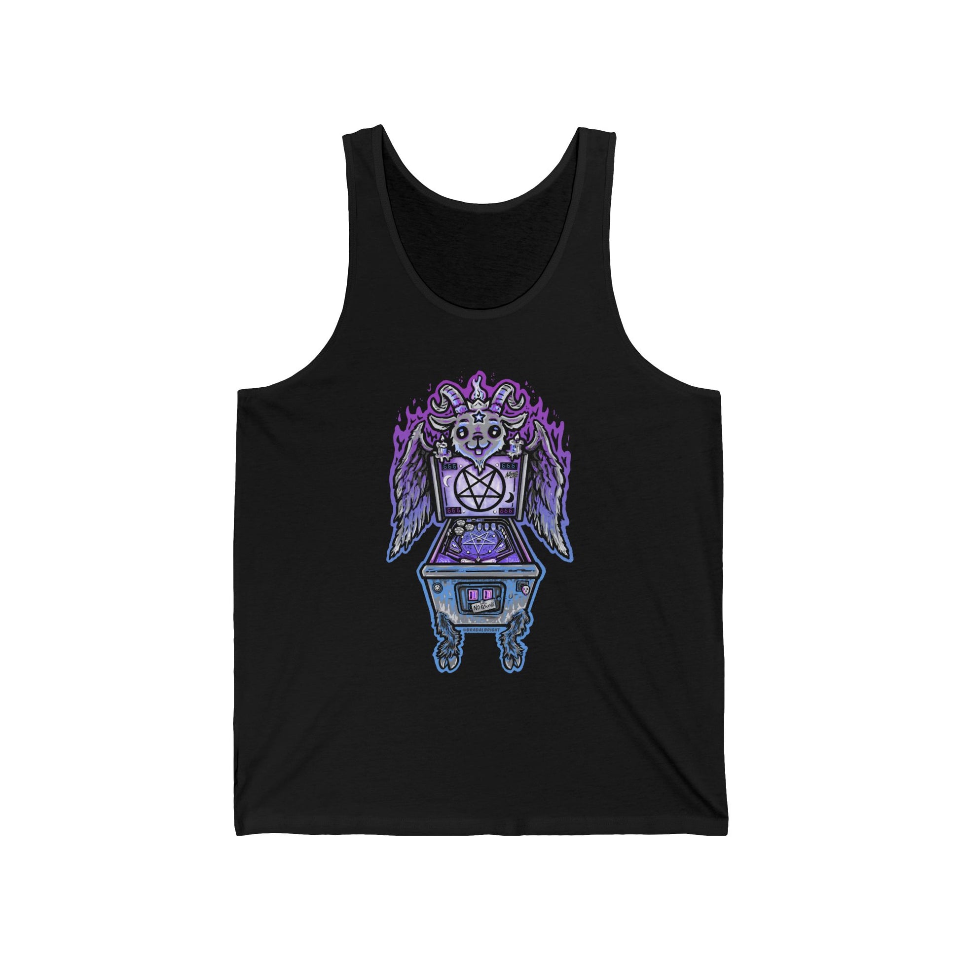 Light, breathable, and built to move with you — this jersey tank brings vintage strength and playful pinball charm to your everyday wardrobe. The central artwork pairs a Rosie-inspired figure with a retro pinball machine and a bold banner, giving the tank a nostalgic, defiant energy. Wear it layered under an open shirt for city nights, or solo on hot days at the park or the arcade. The retail fit and soft Airlume cotton make it feel lived-in from the first wear, while side seams and self-fabric binding keep the shape through countless adventures. This tank is for people who like their style with a spark of retro rebellion and a wink of fun.