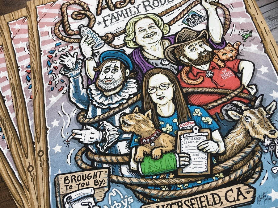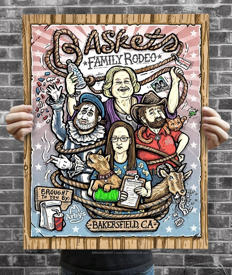 Baskets Family Rodeo - Limited Edition Illustrated Poster - Signed by the Artist