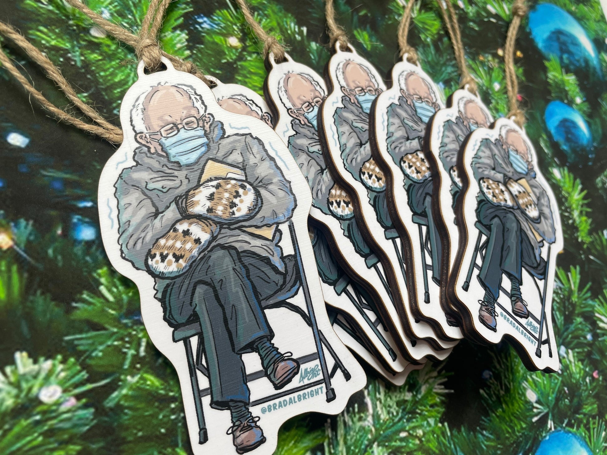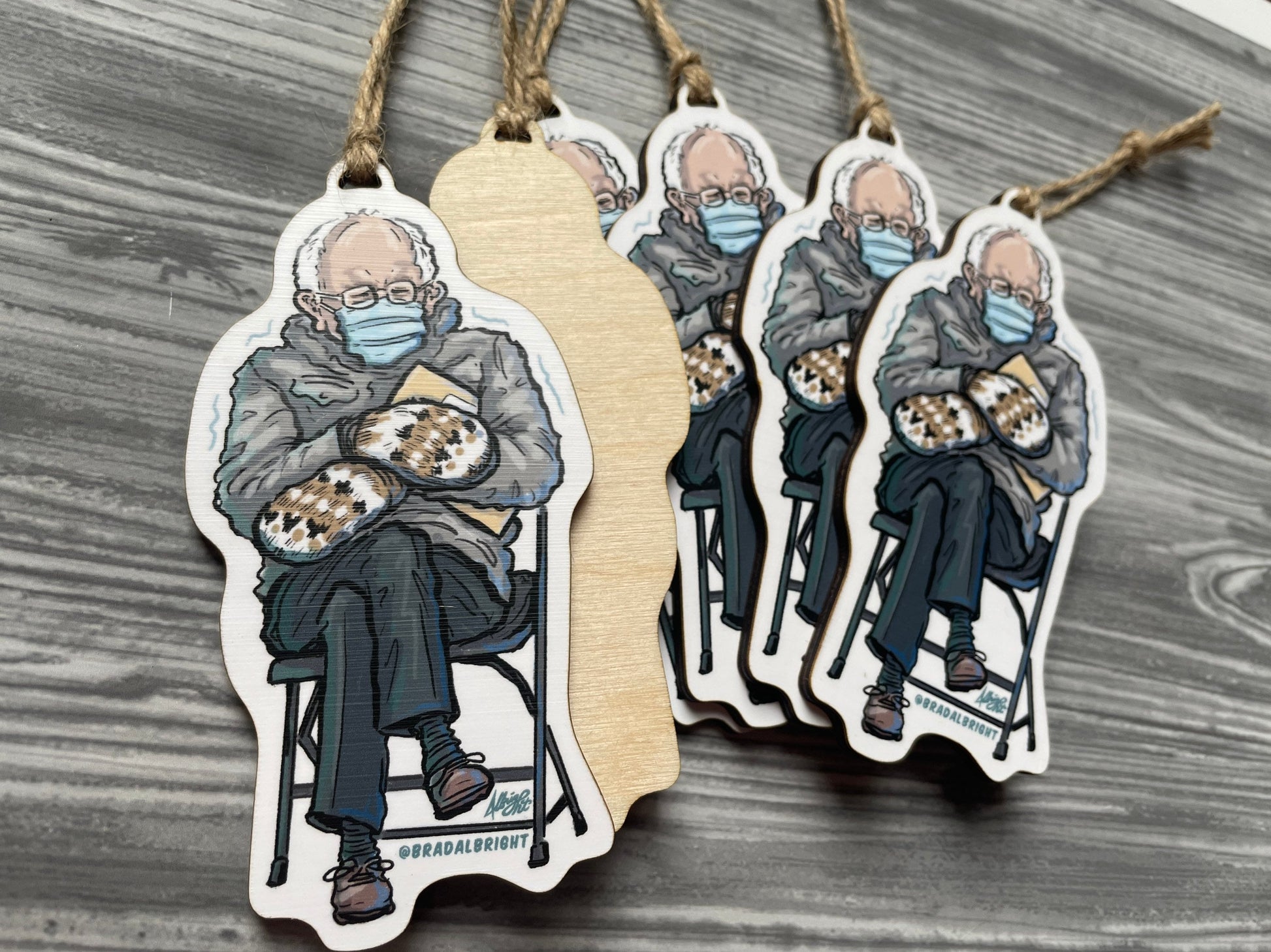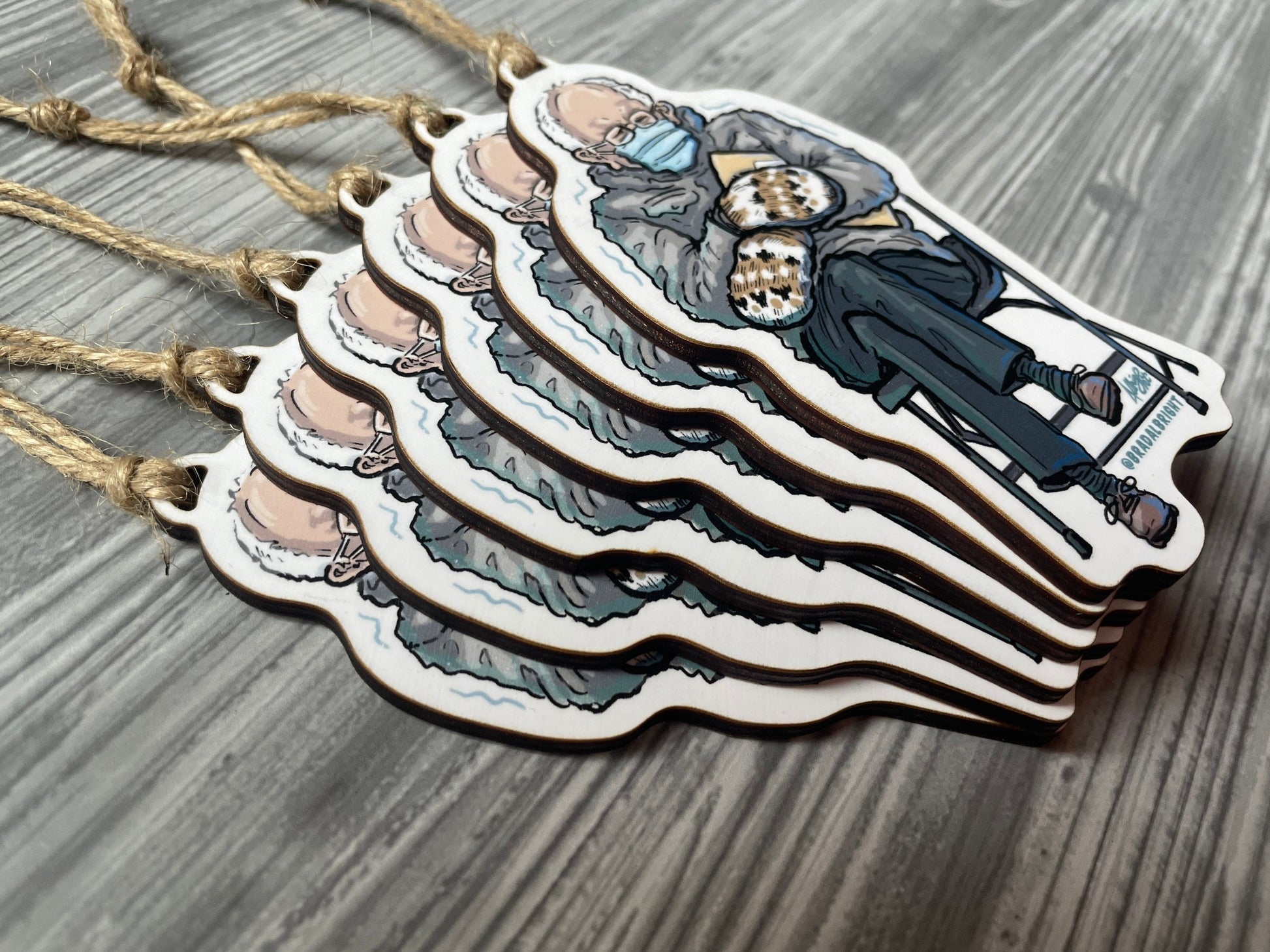 Bernie Sanders' Mittens Christmas Ornament - Bernie Sanders Meme - Hand Drawn Wood Ornament