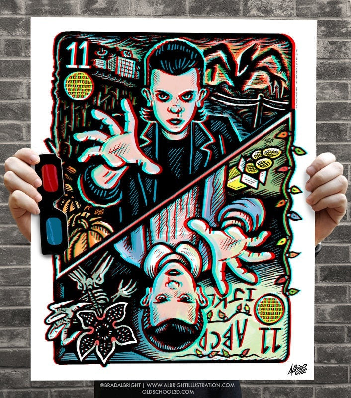 Bitchin Eleven 3D Poster - reversible with Glasses - Inspired by Stranger Things 1 & 2