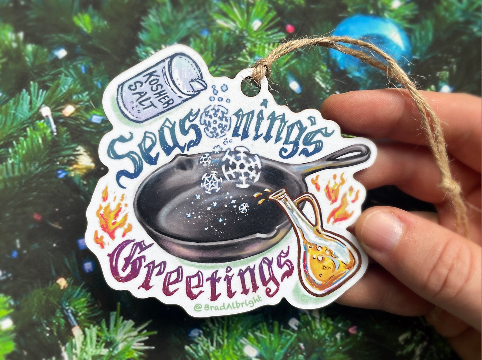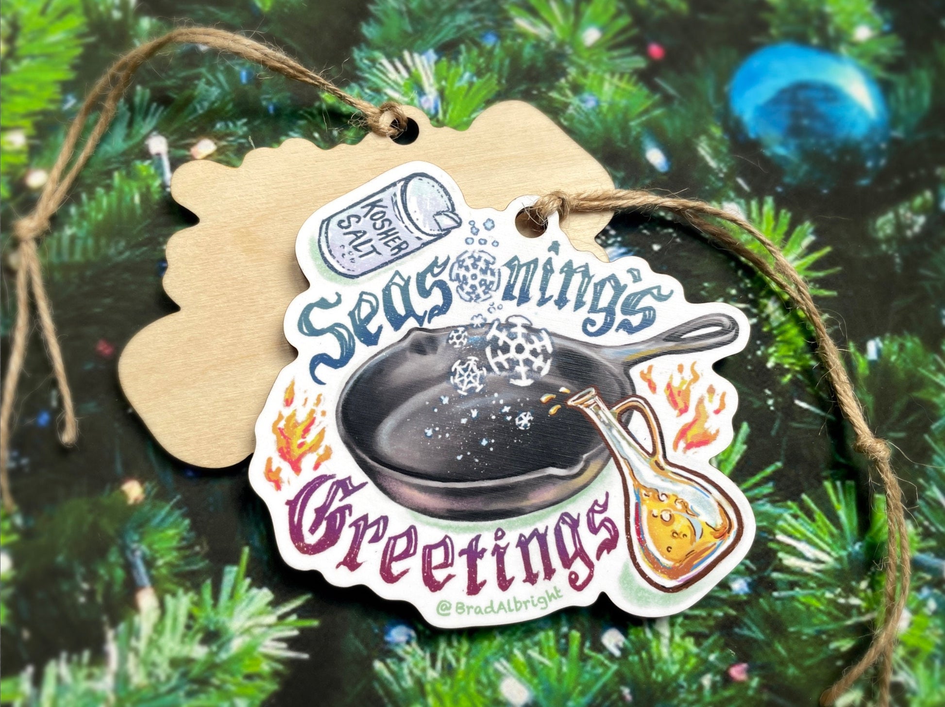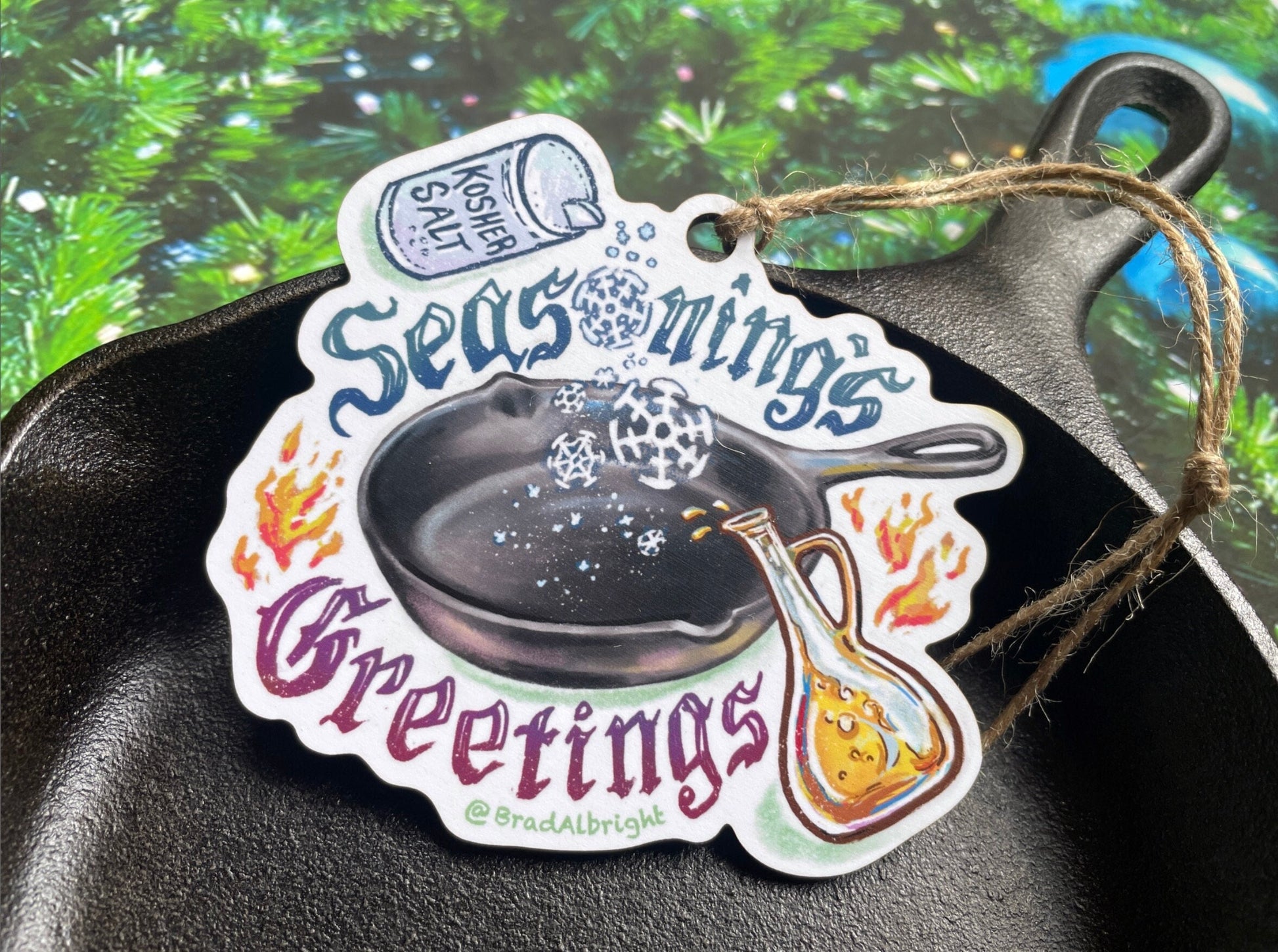 Cast Iron 'Seasonings Greetings' Ornament - Christmas Decoration - Cast Iron Pan Ornament