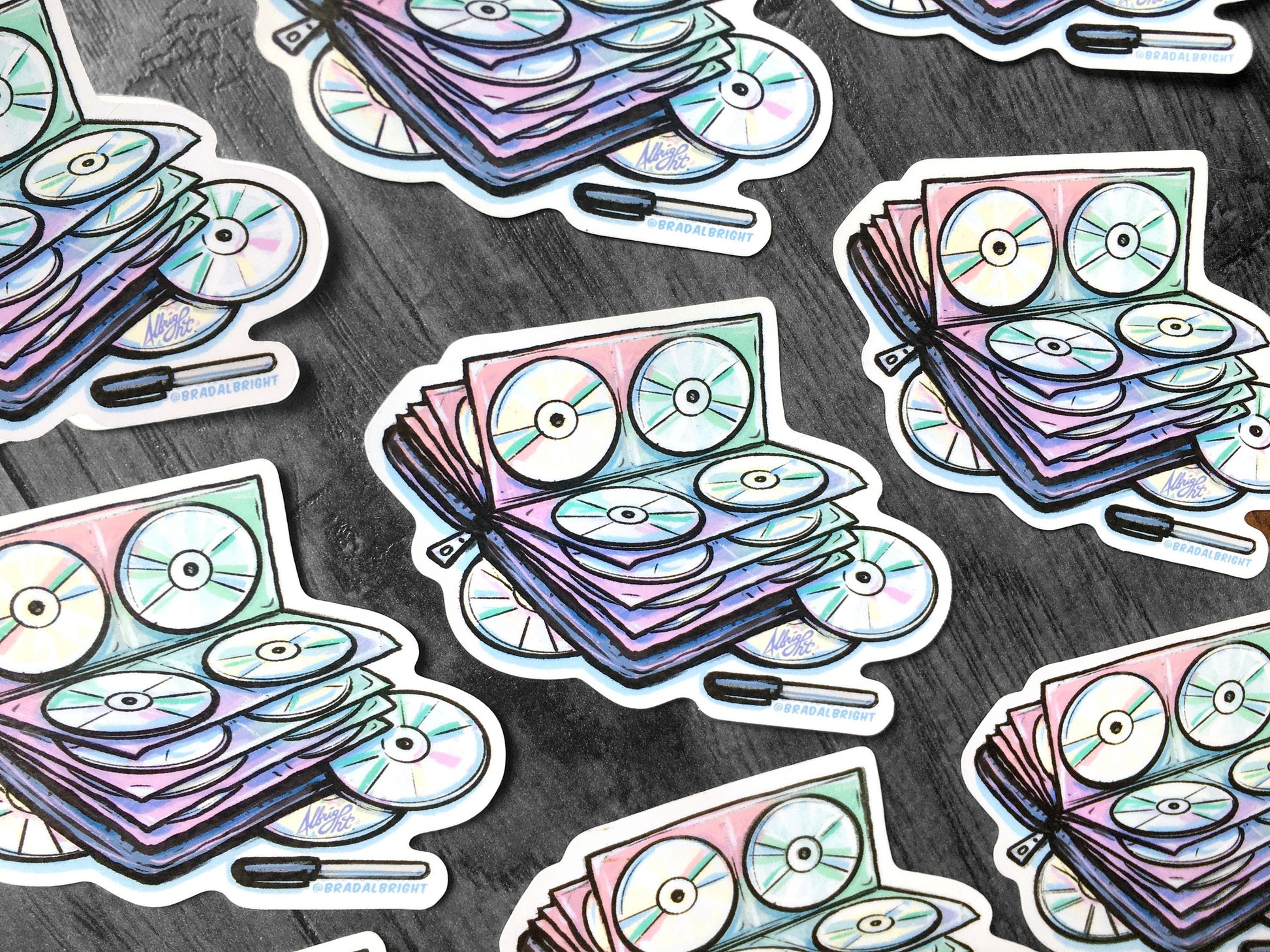 CD Collection Book Sticker - Retro Music CD Storage Wallet Illustration - Water Resistant Decal