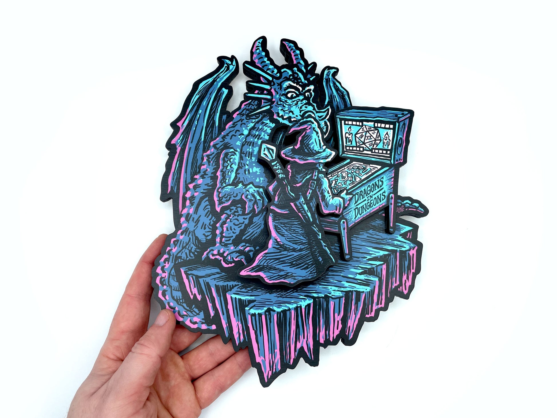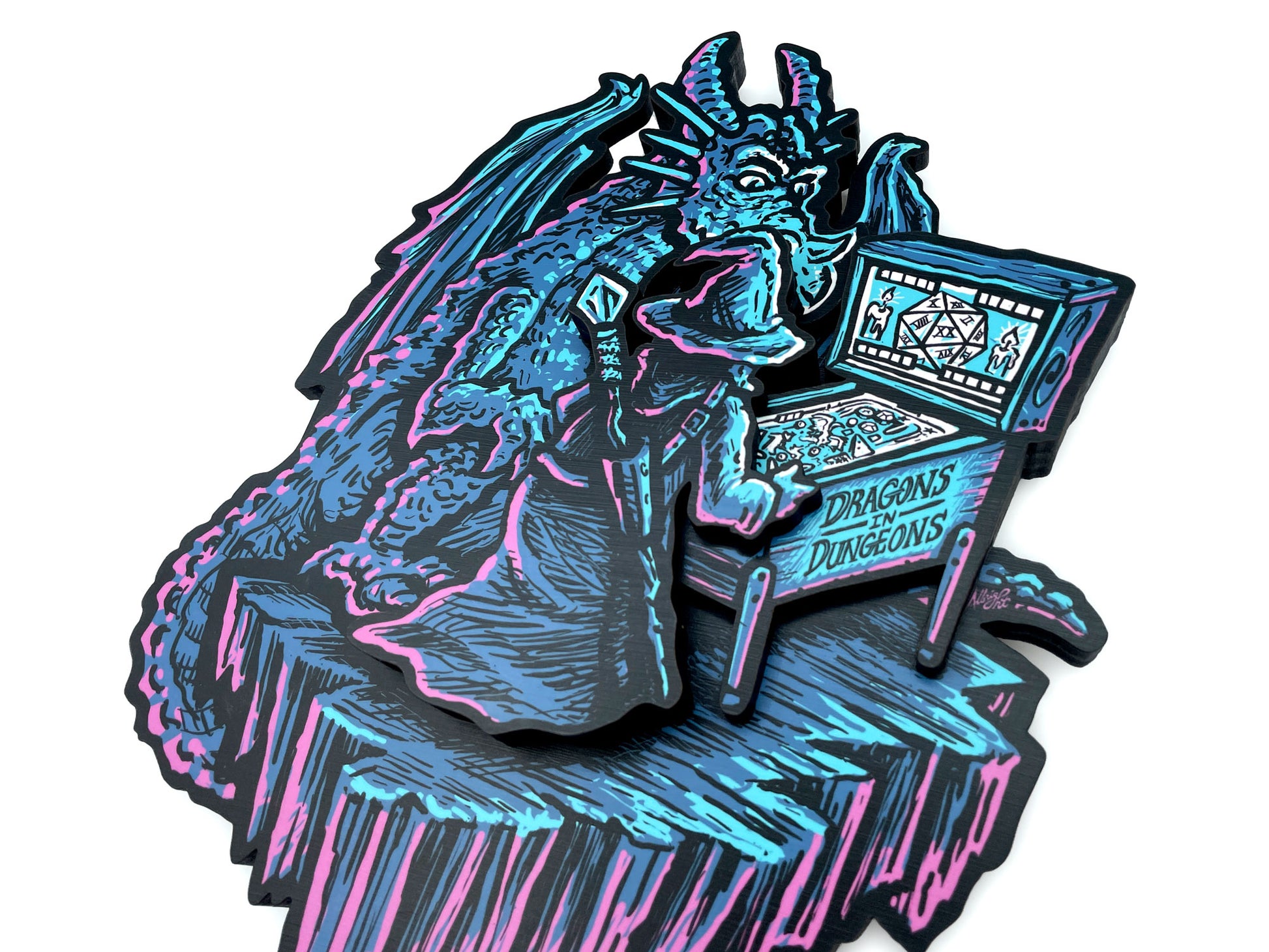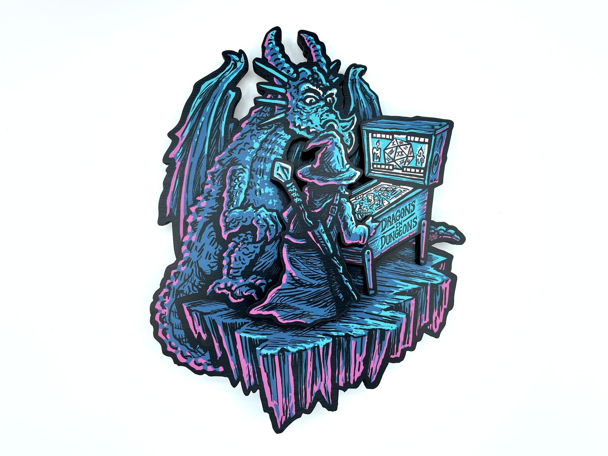 Dragons In Dungeons - Pinball Wizard Woodcut Wall Art