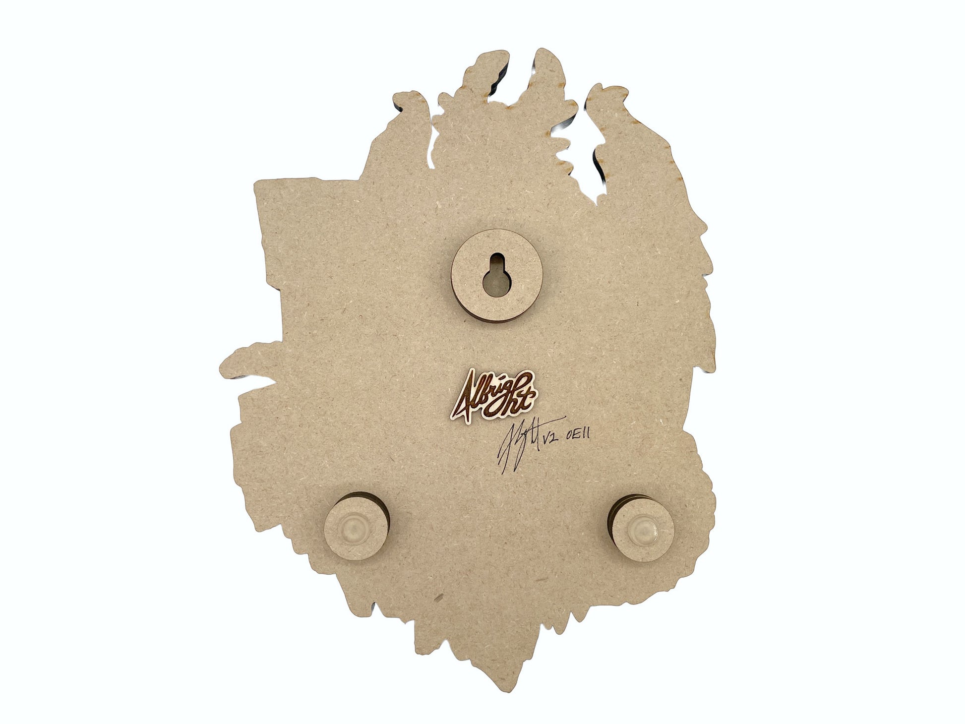 Ships with custom built-in hanging gear and an interlocking bear-claw screw, providing a safe and secure wall mount that seems to float magically off the wall for extra dimensionality. Signed and numbered by the artist, open edition with engraved Albright badge. numbering may vary from photo.
