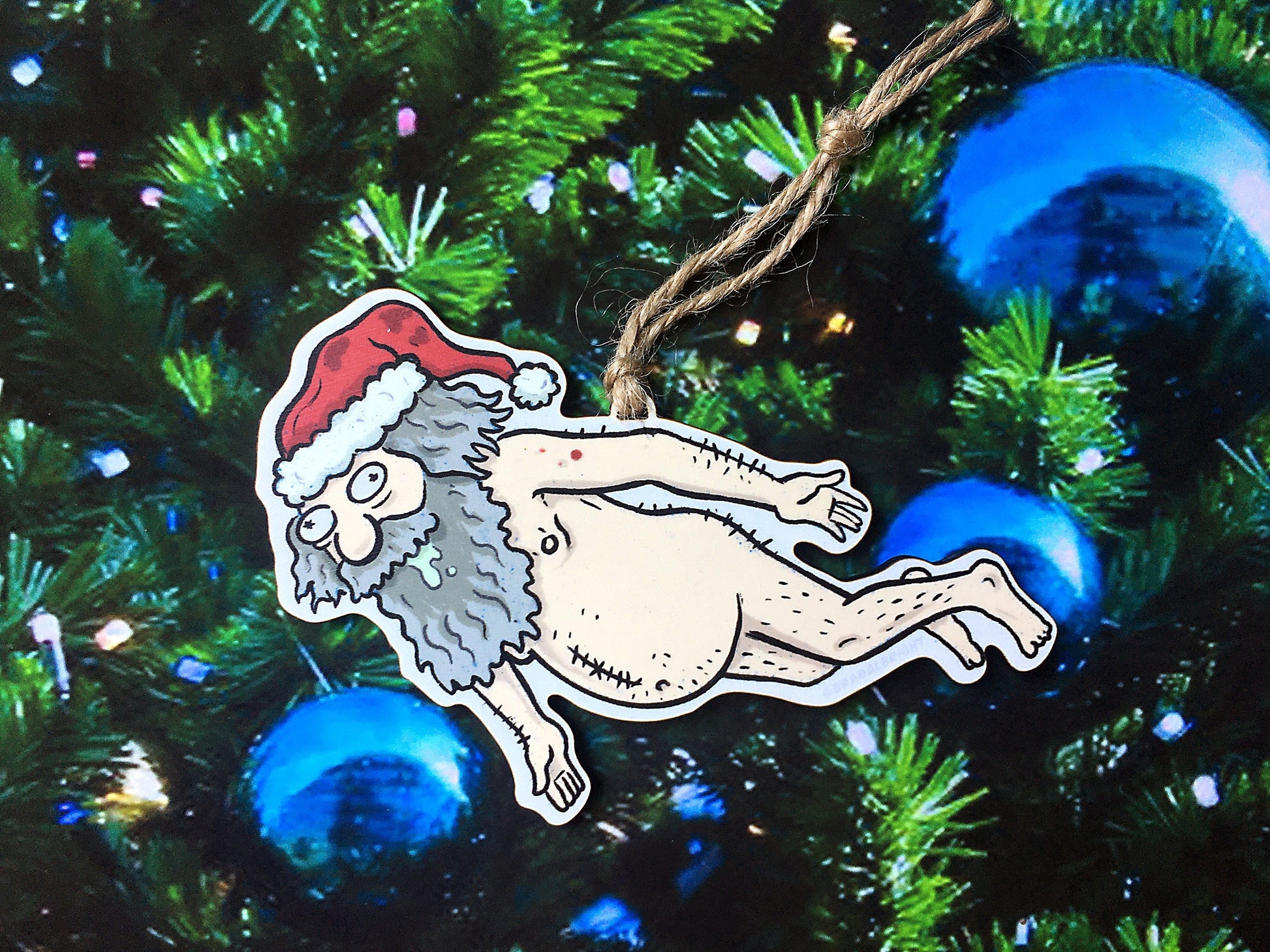 Rick & Morty Ruben - Homeless Naked Santa - Wooden Christmas Ornament