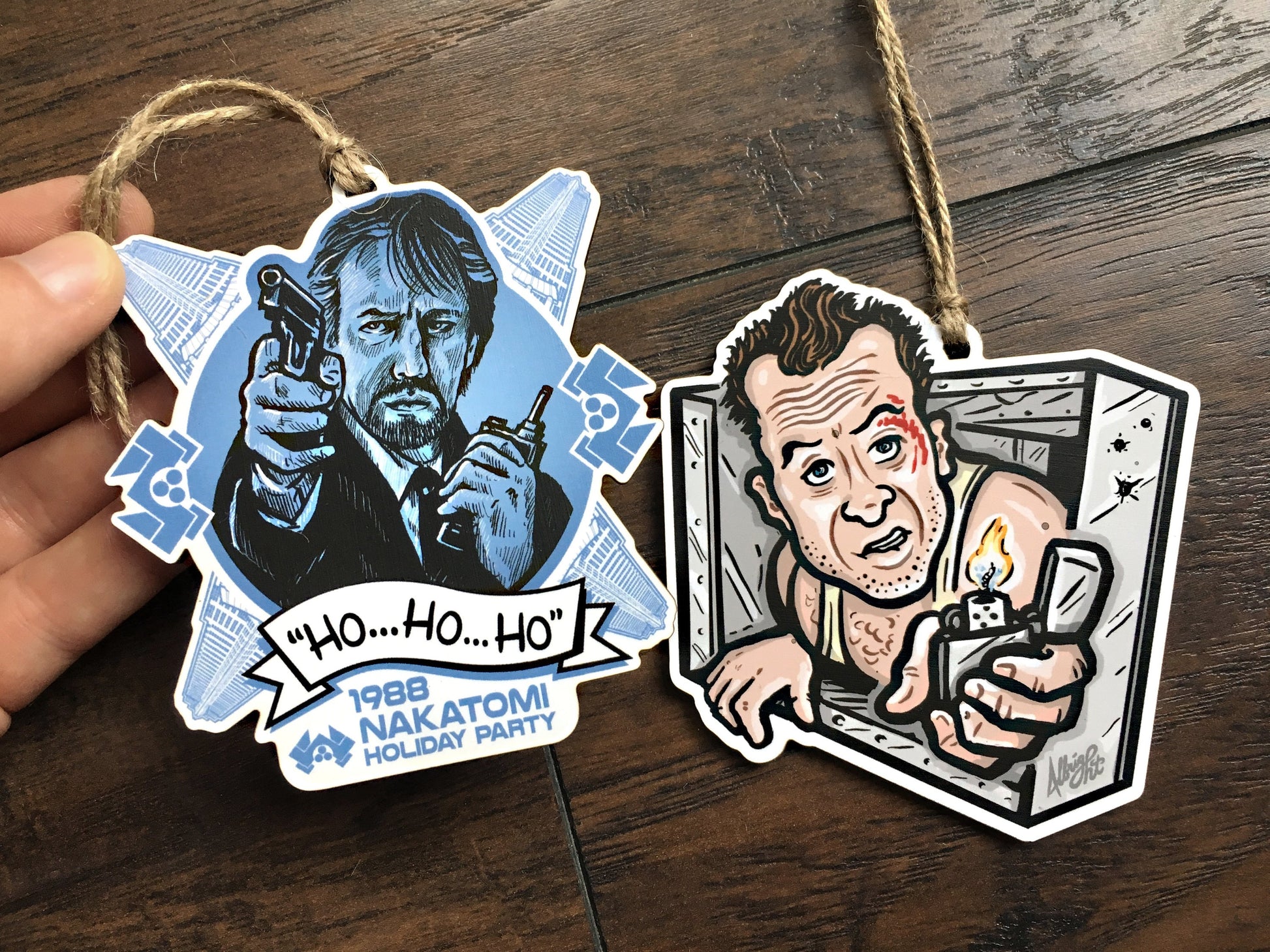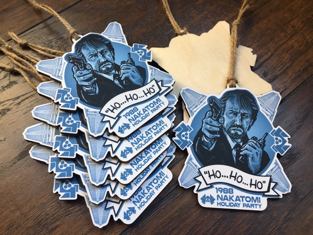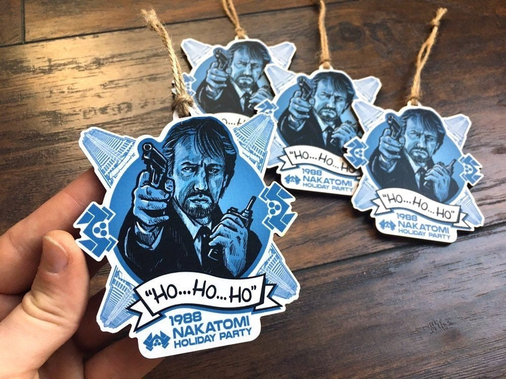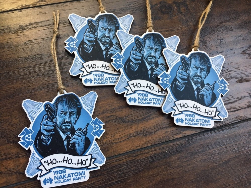 Featuring a custom hand-drawn illustration of Alan Rickman playing Hans Gruber, the best villain of all Christmas movies, with Nakatomi building and company logo forming the snowflake backdrop. Archival printing and precisely lasercut on 1/8” birch wood. to remind you the reason for the season... rewatching Die Hard!