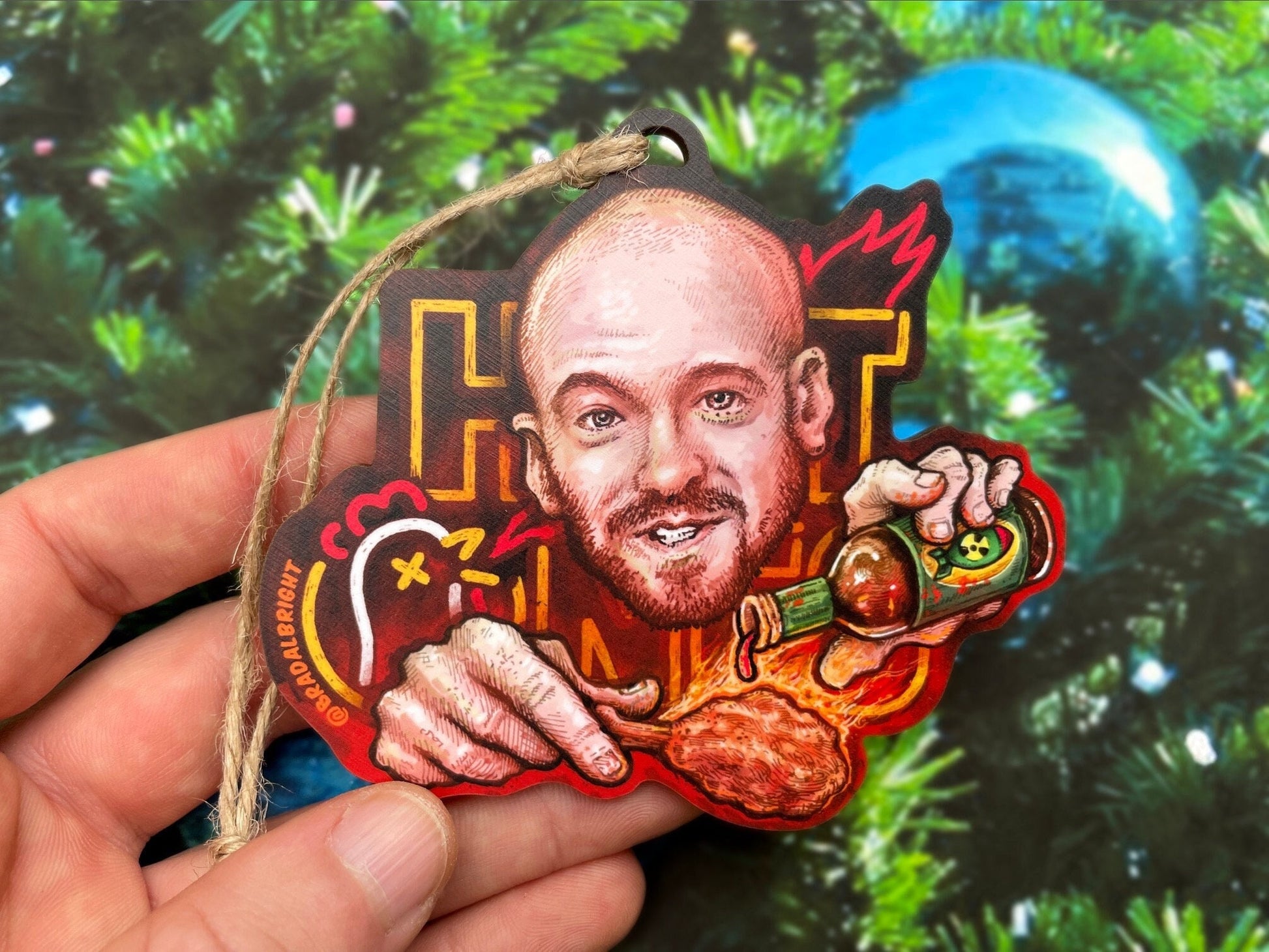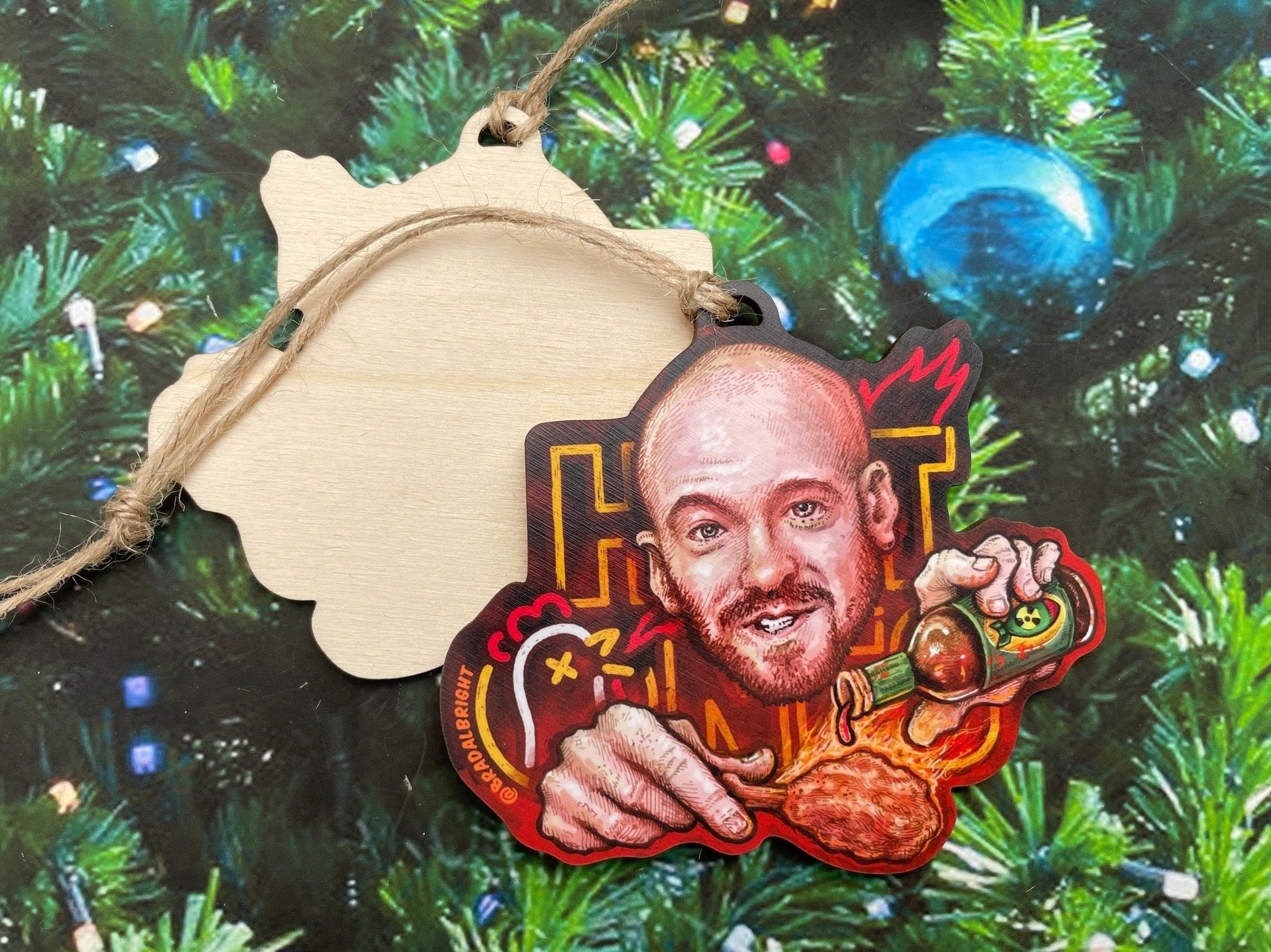 Hot Ones Tribute Ornament - Sean Evans Portait Illustration - Last Dab / DaBomb Christmas
