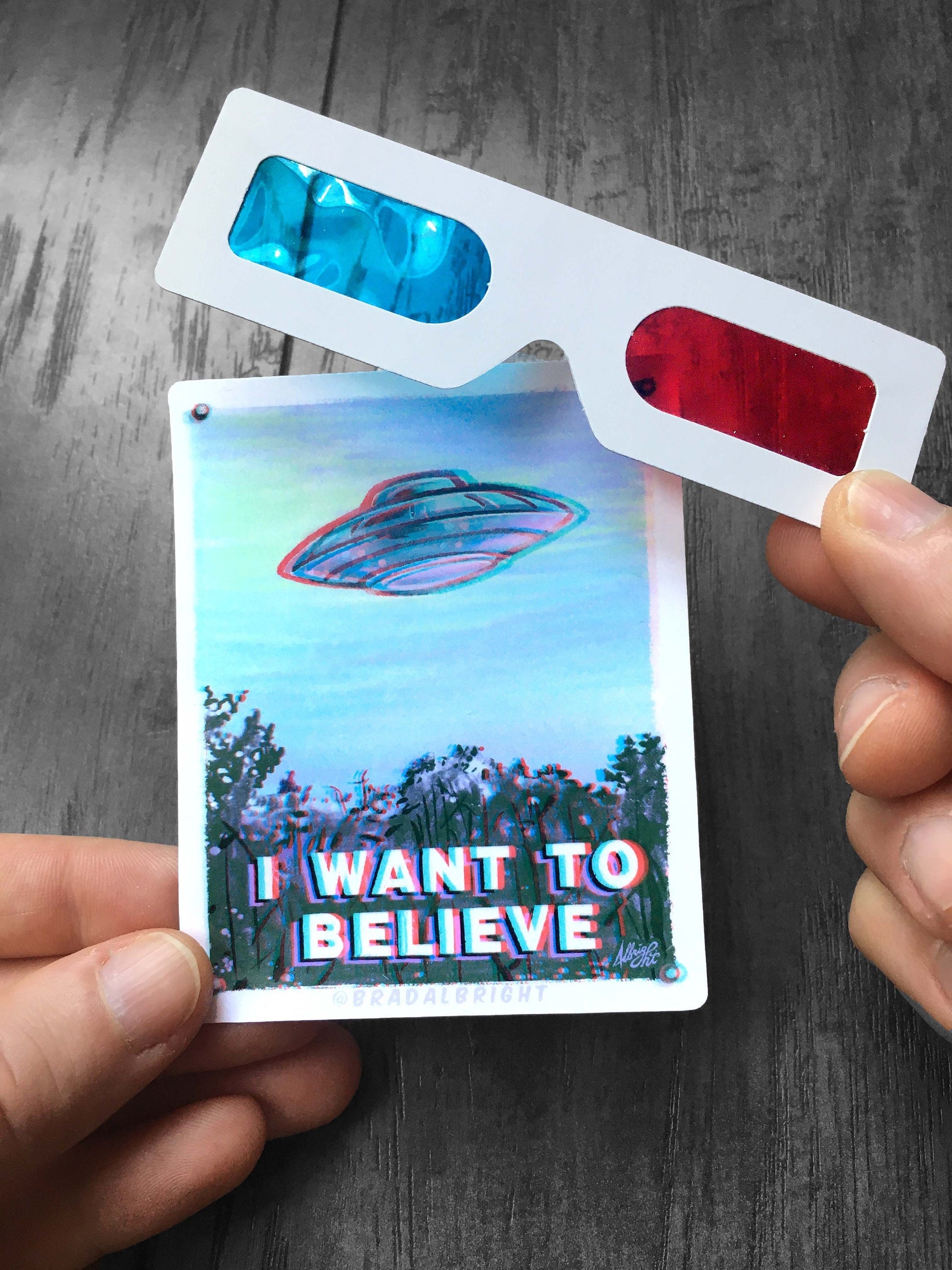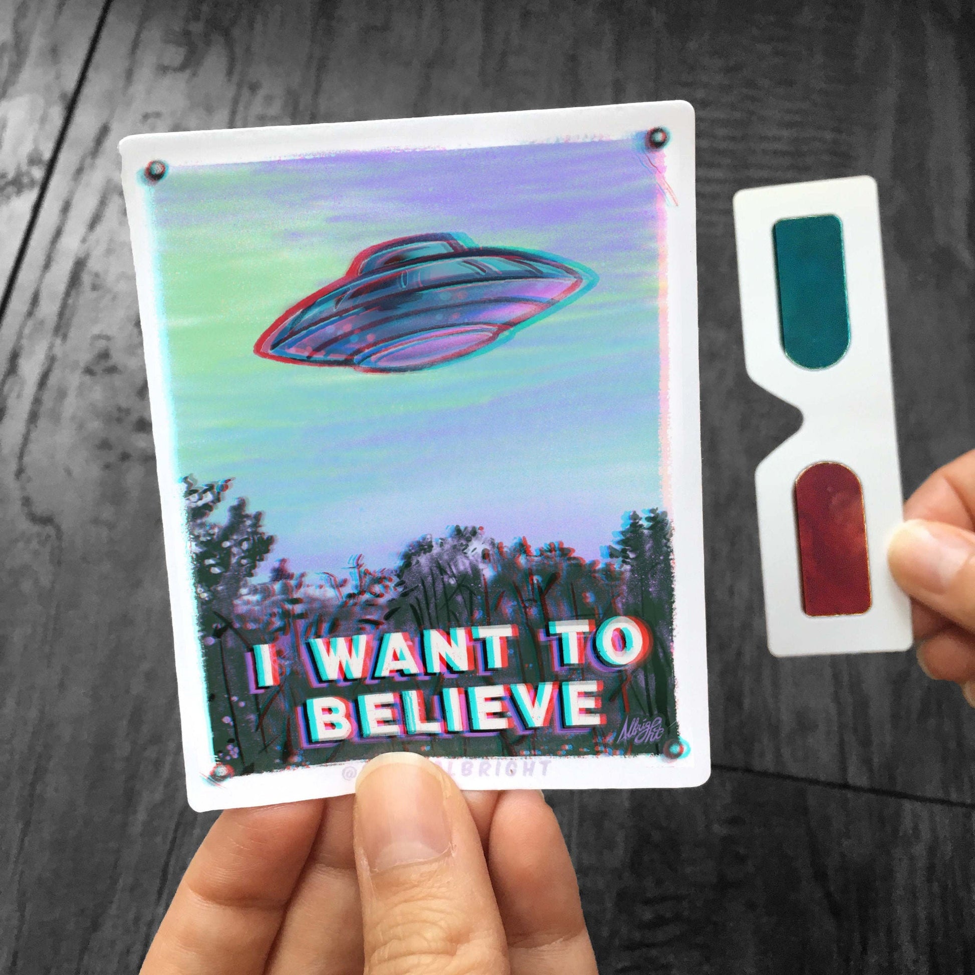 I Want To Believe Sticker with Mini 3D Glasses - Mulder UFO Mini Poster - Weatherproof Decal