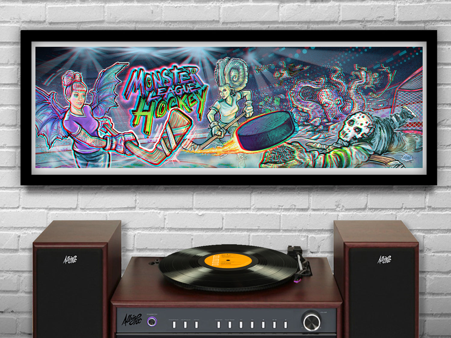 MONSTER LEAGUE HOCKEY Panorama - 3D Anaglyphic Numbered Print with Glasses