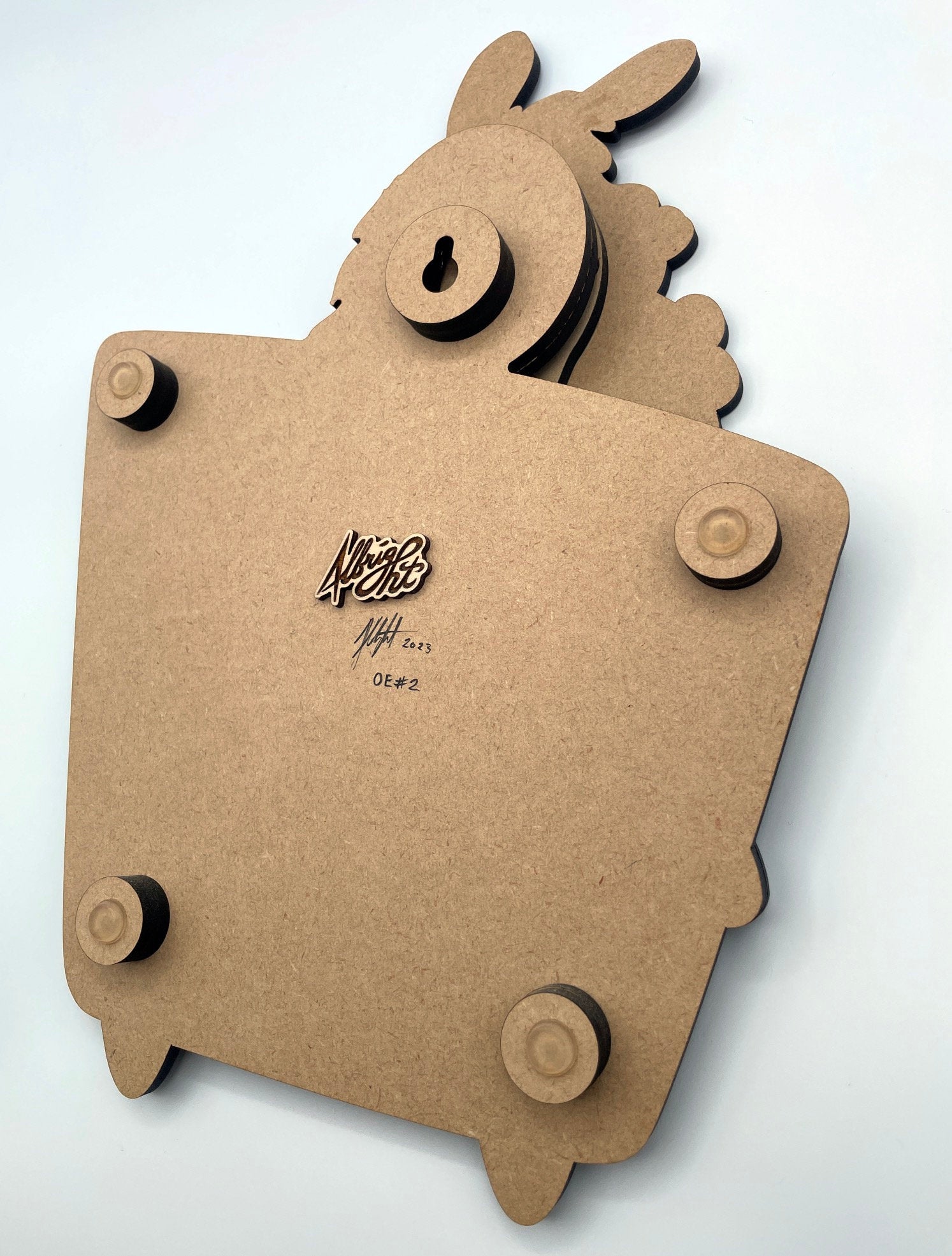 Ships with custom built-in hanging gear and an interlocking bear-claw screw, providing a safe and secure wall mount that seems to float magically off the wall for extra dimensionality. Signed and numbered by the artist, open edition with engraved Albright badge. numbering may vary from photo.
