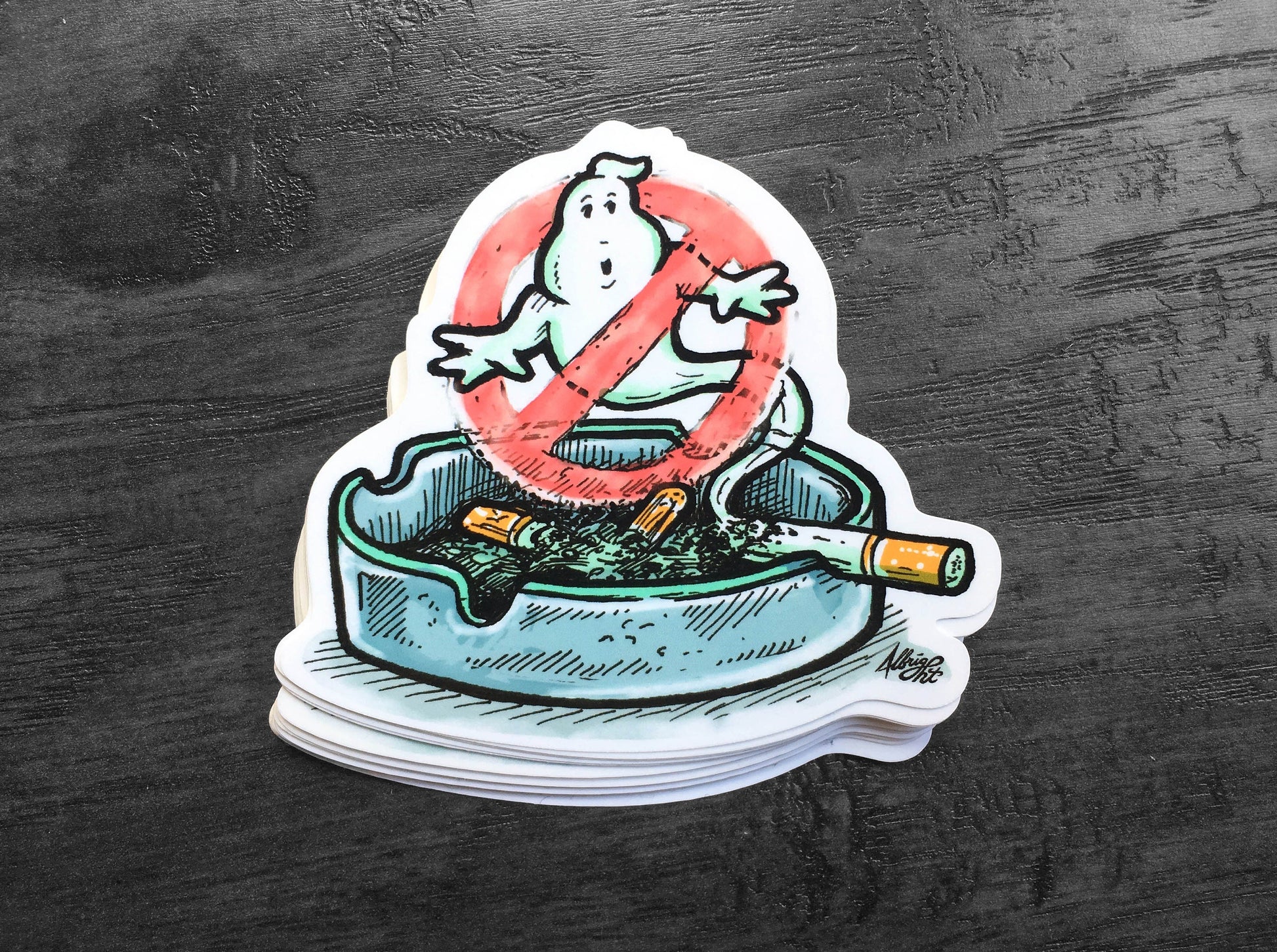 Water-resistant decal, from an original ballpoint pen illustration inspired by Ghostbusters (1984).