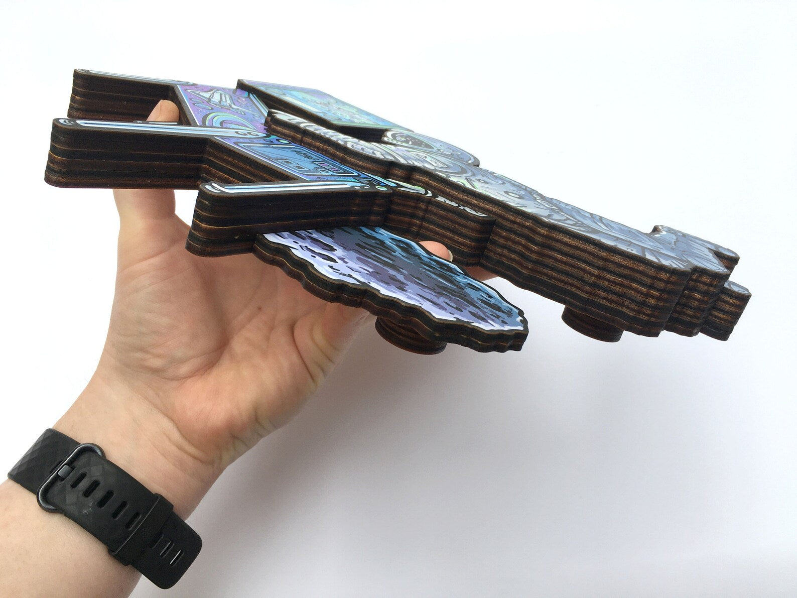 This unique handmade 3D wall sculpture celebrates pinball with an original illustration presented in dimensionally layered construction. With lovingly hand-crafted attention to detail, it’s an eye-popping addition to any game room, arcade, man cave, or living room.