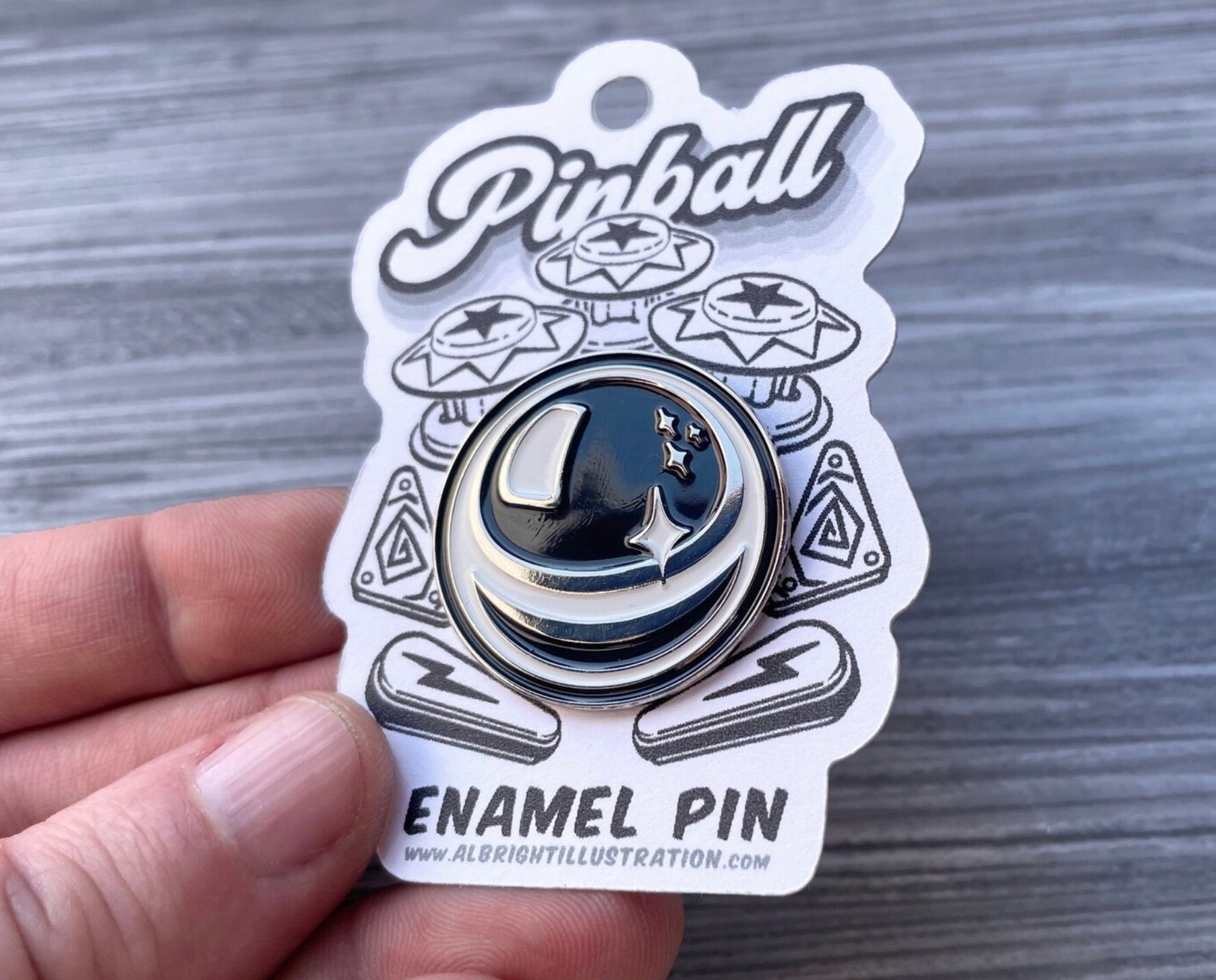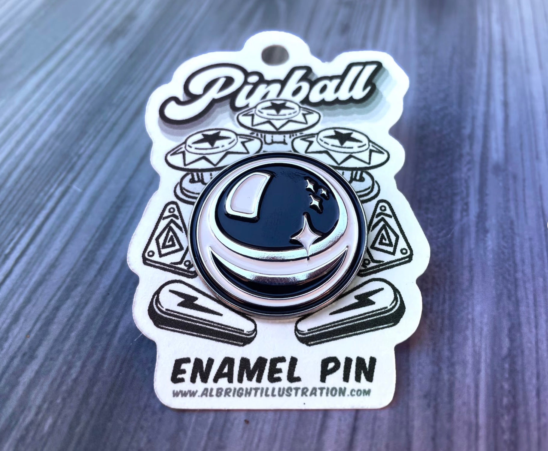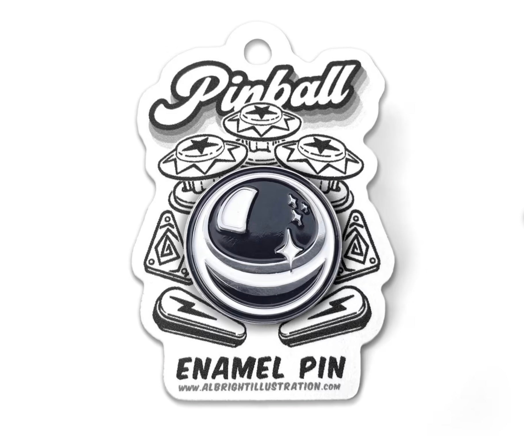 Original hand-drawn pinball design with decorative display card... looks kickass worn or displayed as a collectible.