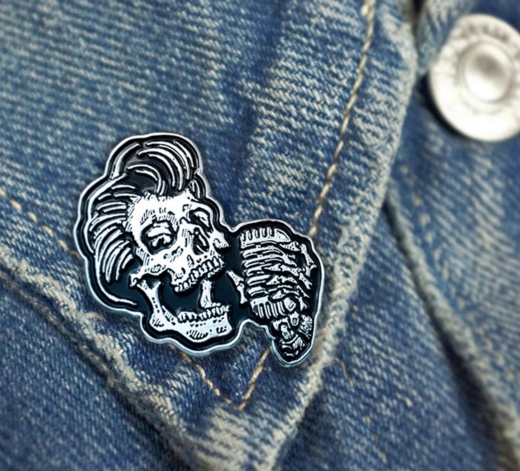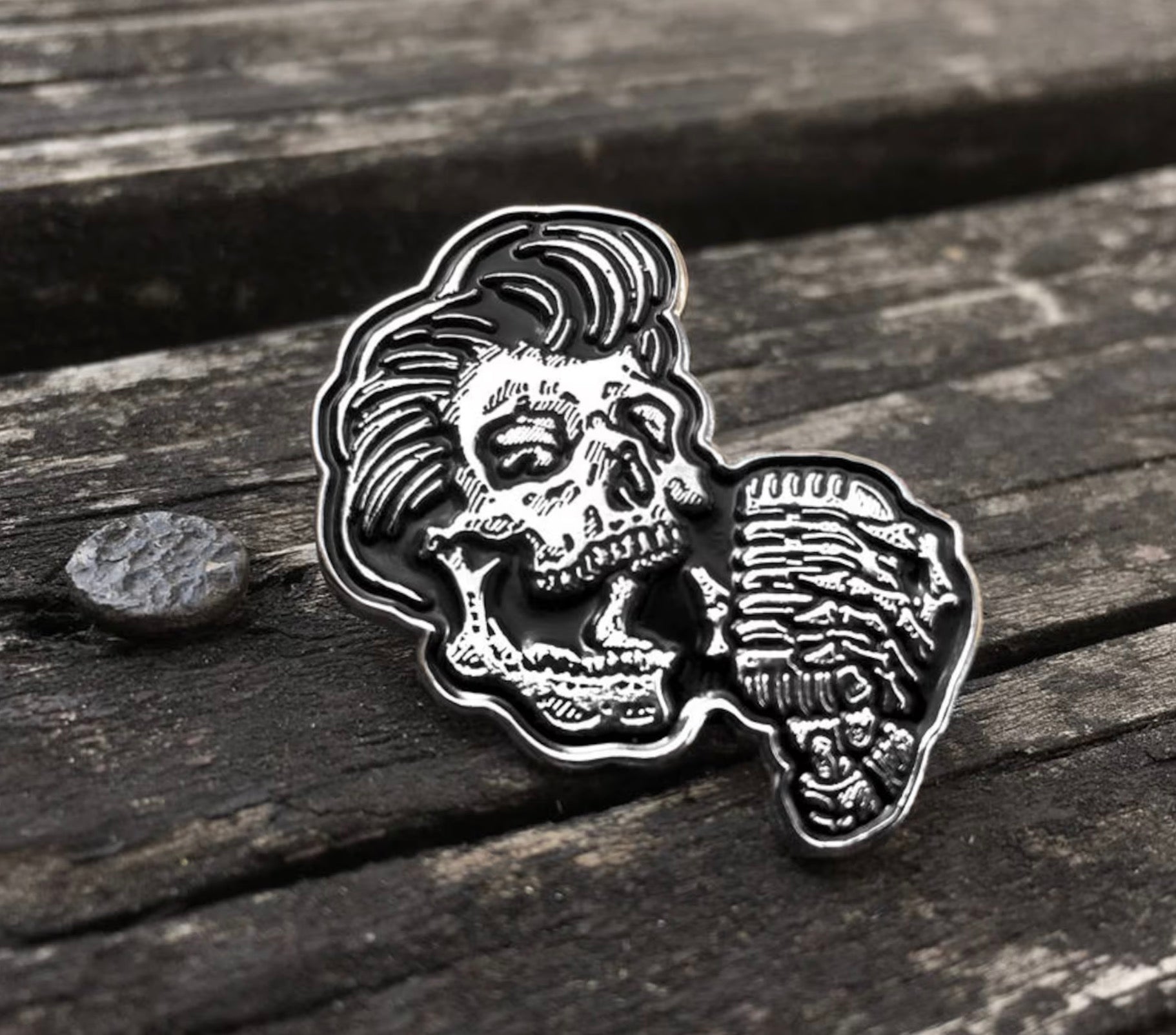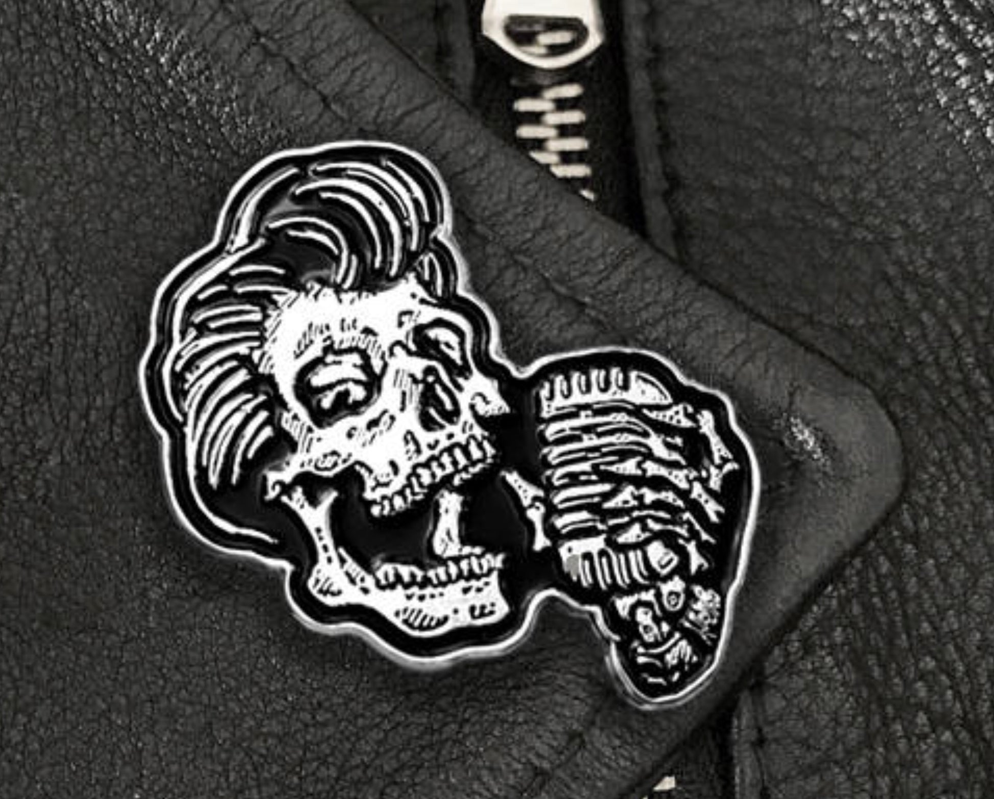 Rockabilly Greaser Lapel Pin - Greaser Skull w/ Vintage Microphone