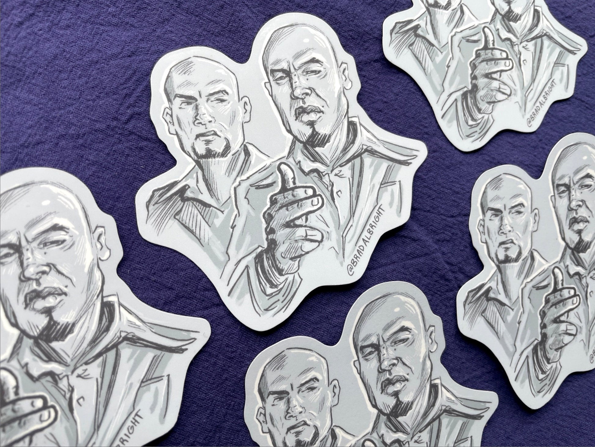 Salamanca Cousins Sticker - Hand Drawn Portrait Illustration - Water Resistant Decals & Magnets