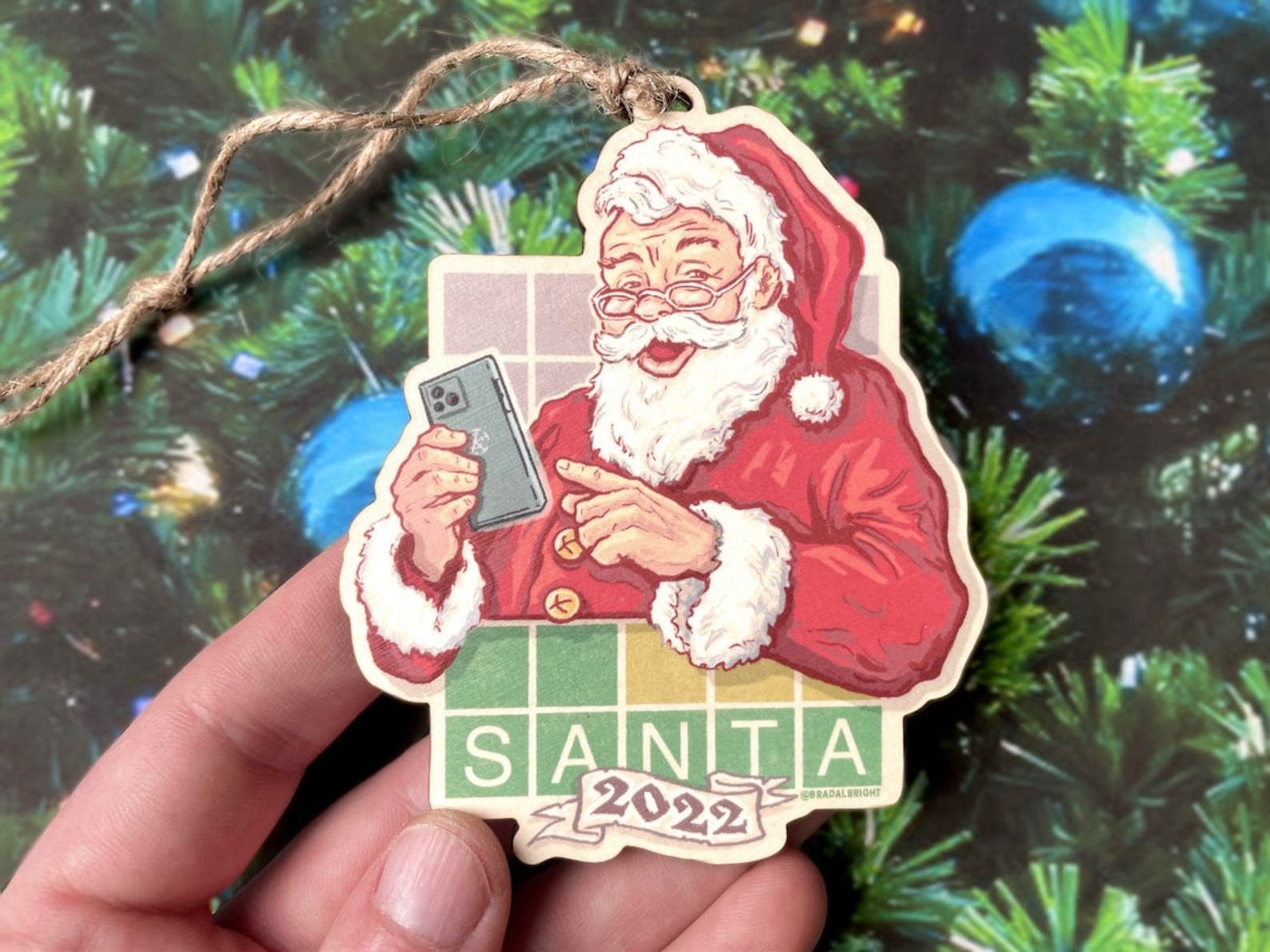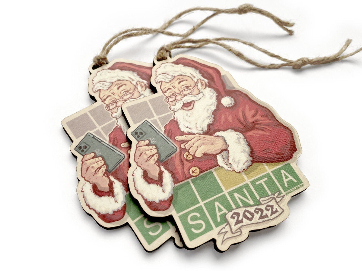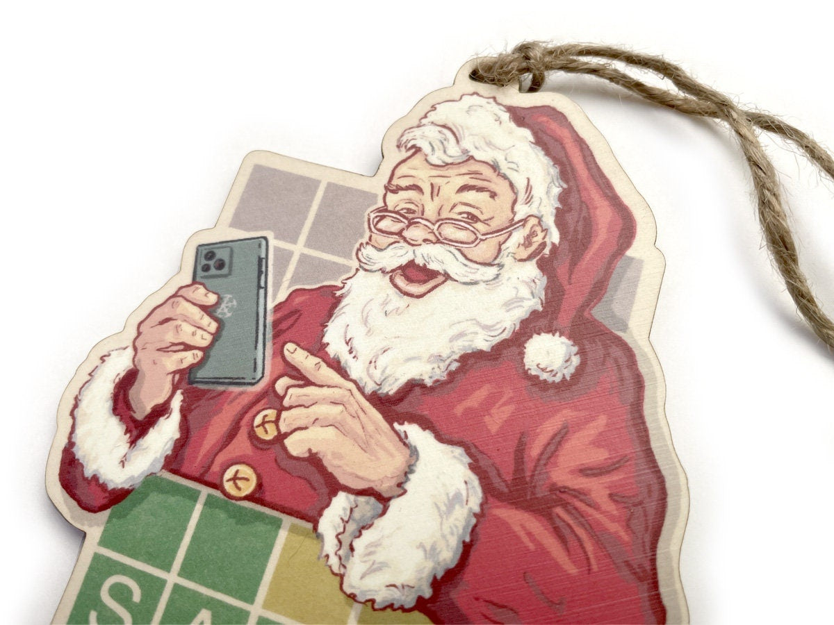 Santa Playing WORDLE 2022 Ornament - Christmas 2022 - Retro Santa Claus Playing Daily Word Game Xmas Ornament