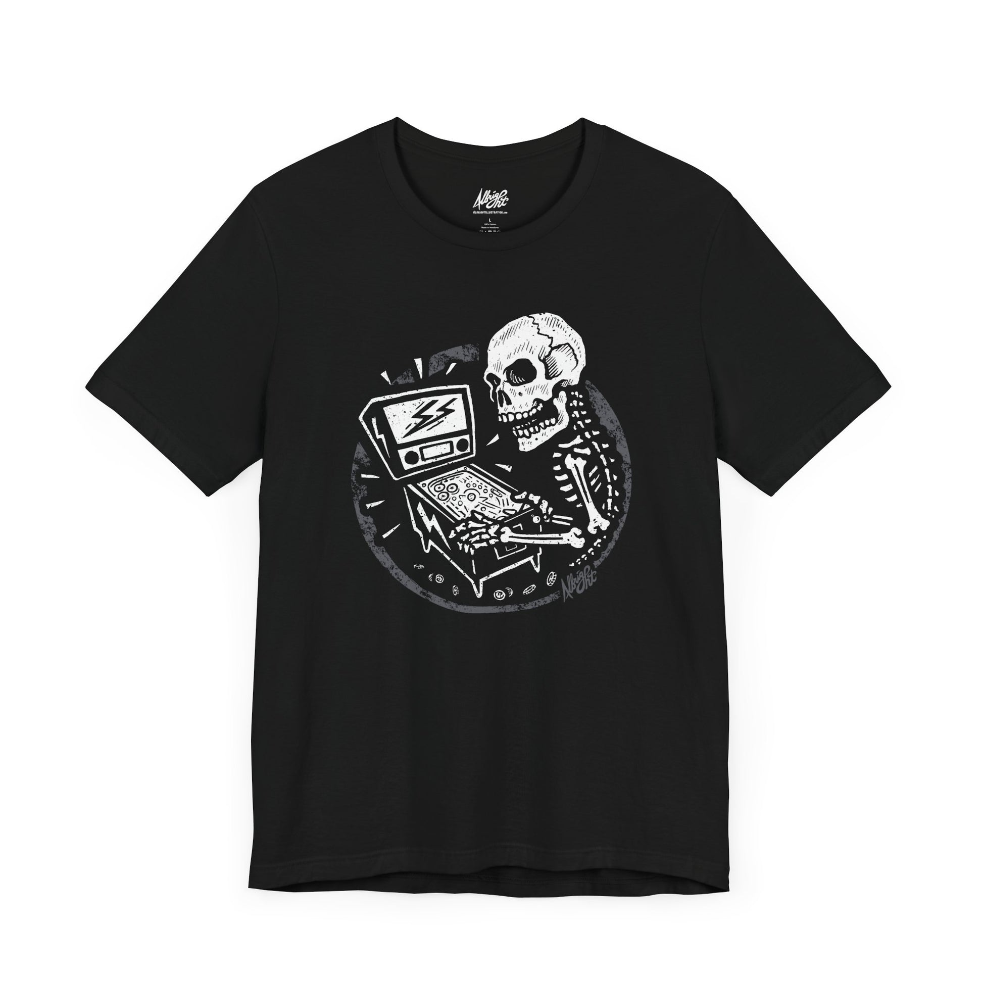 Illustration © BradAbright 2025 This classic unisex jersey short sleeve tee fits like a well-loved favorite. Soft cotton and quality print make users fall in love with it over and over again. These t-shirts have-ribbed knit collars to bolster shaping. The shoulders have taping for better fit over time. Dual side seams hold the garment's shape for longer. .: 100% Airlume combed and ringspun cotton (fiber content may vary for different colors) .: Light fabric 4.2 oz/yd (142 g/m) .: Retail fit .: Tear away label .: Runs true to size