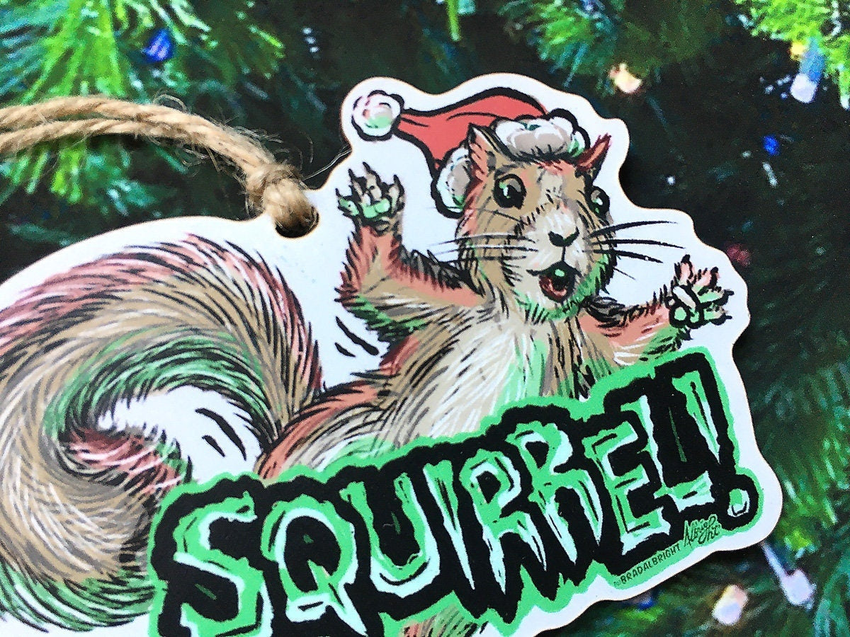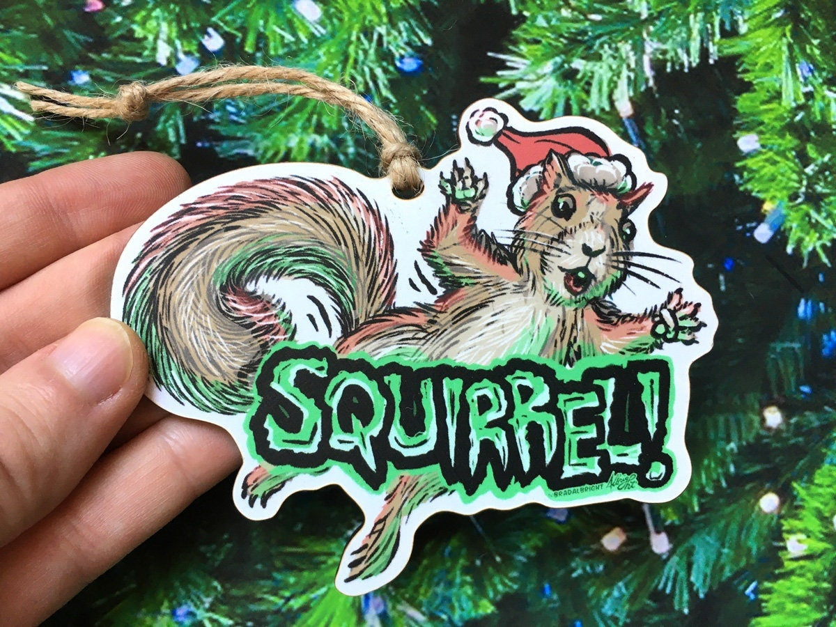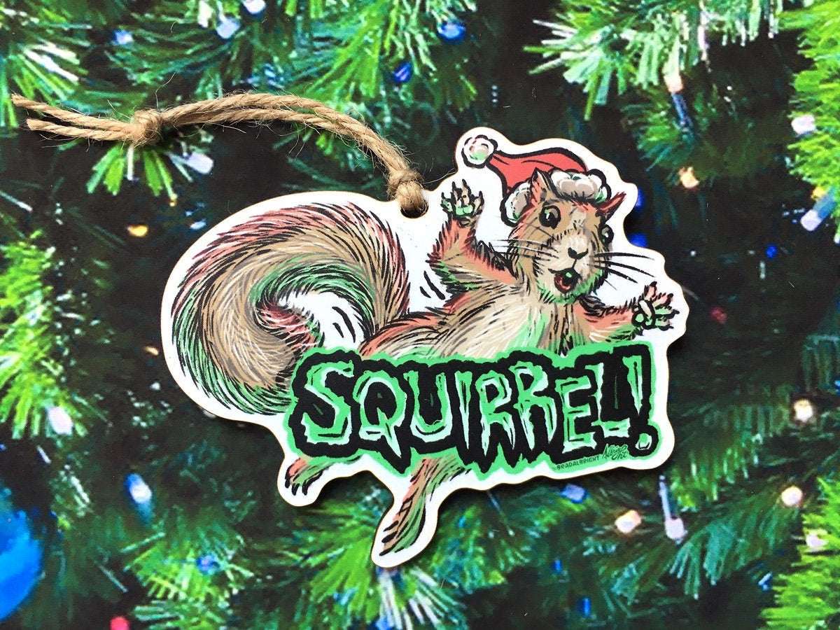 Squirrel in the Tree!! - Christmas Vacation Ornament - - Hand Drawn Wood Ornament