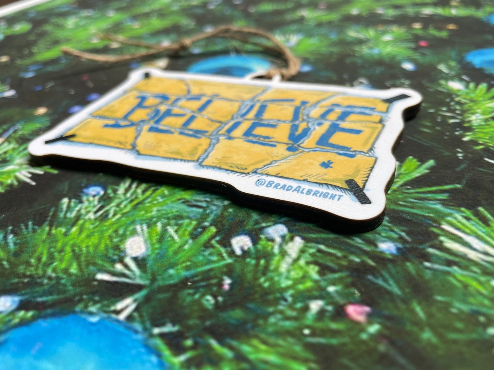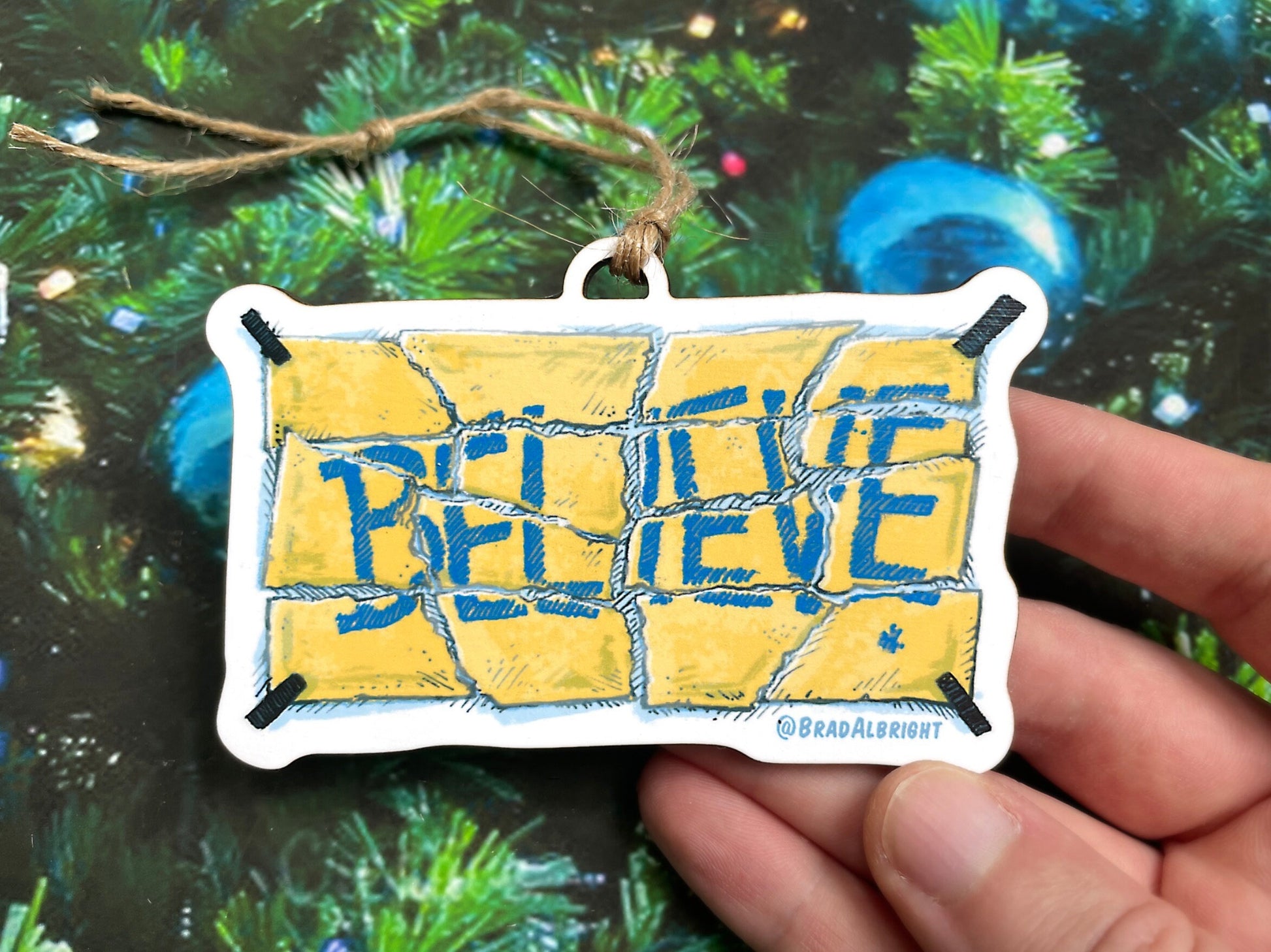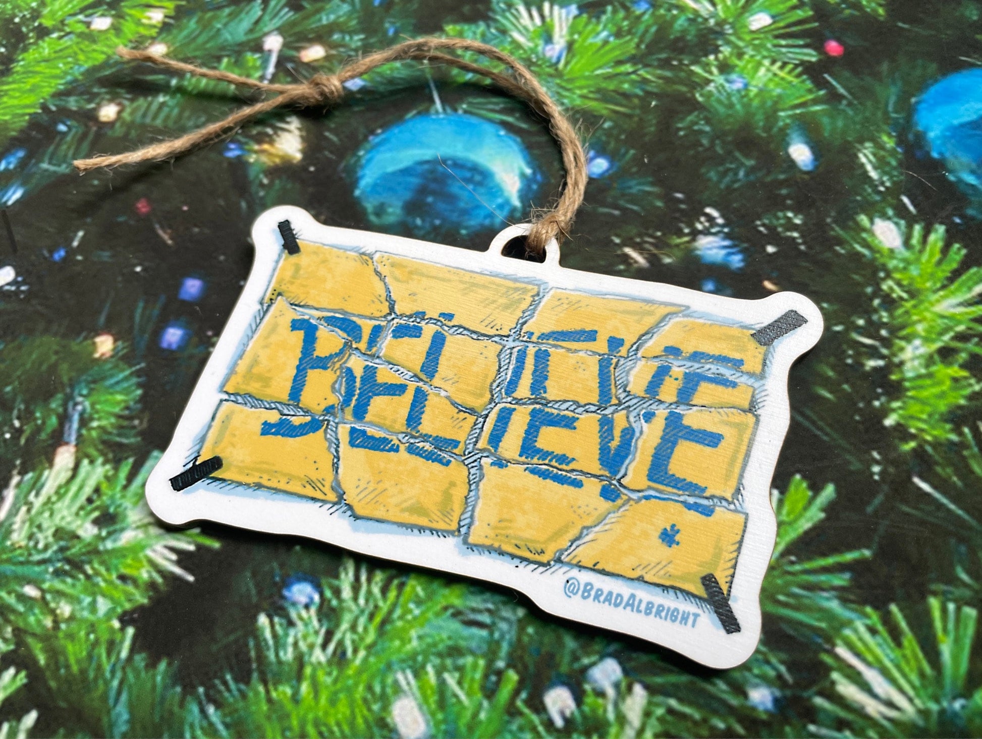 Ted Lasso Believe Ornament - Wood and Archival Giclee Print - Hand Drawn Wood Ornament
