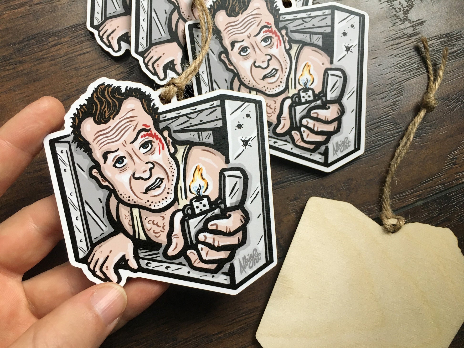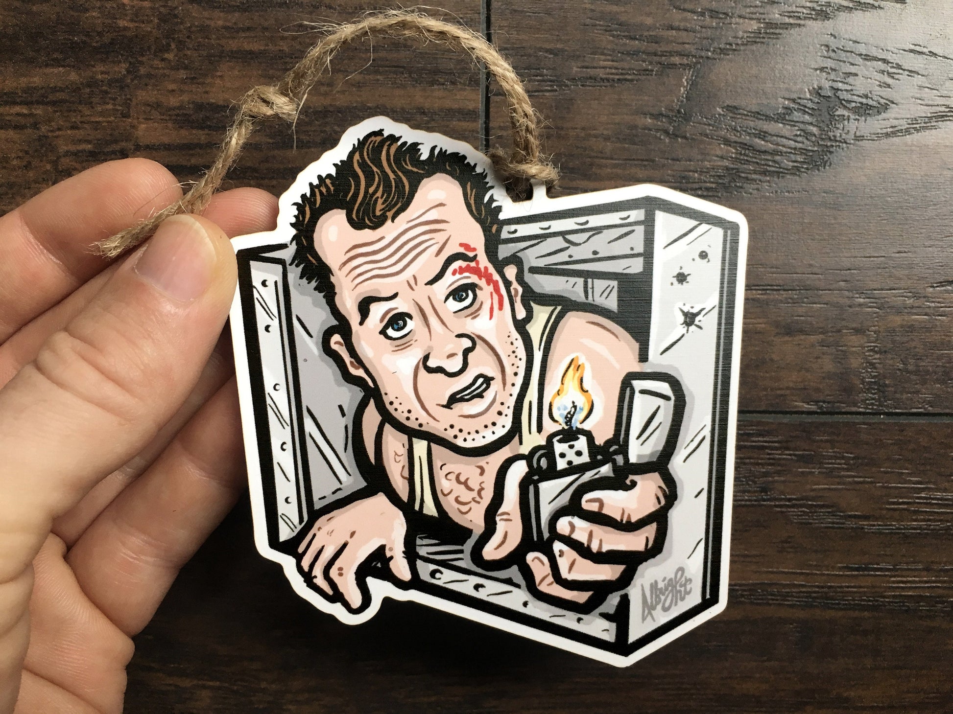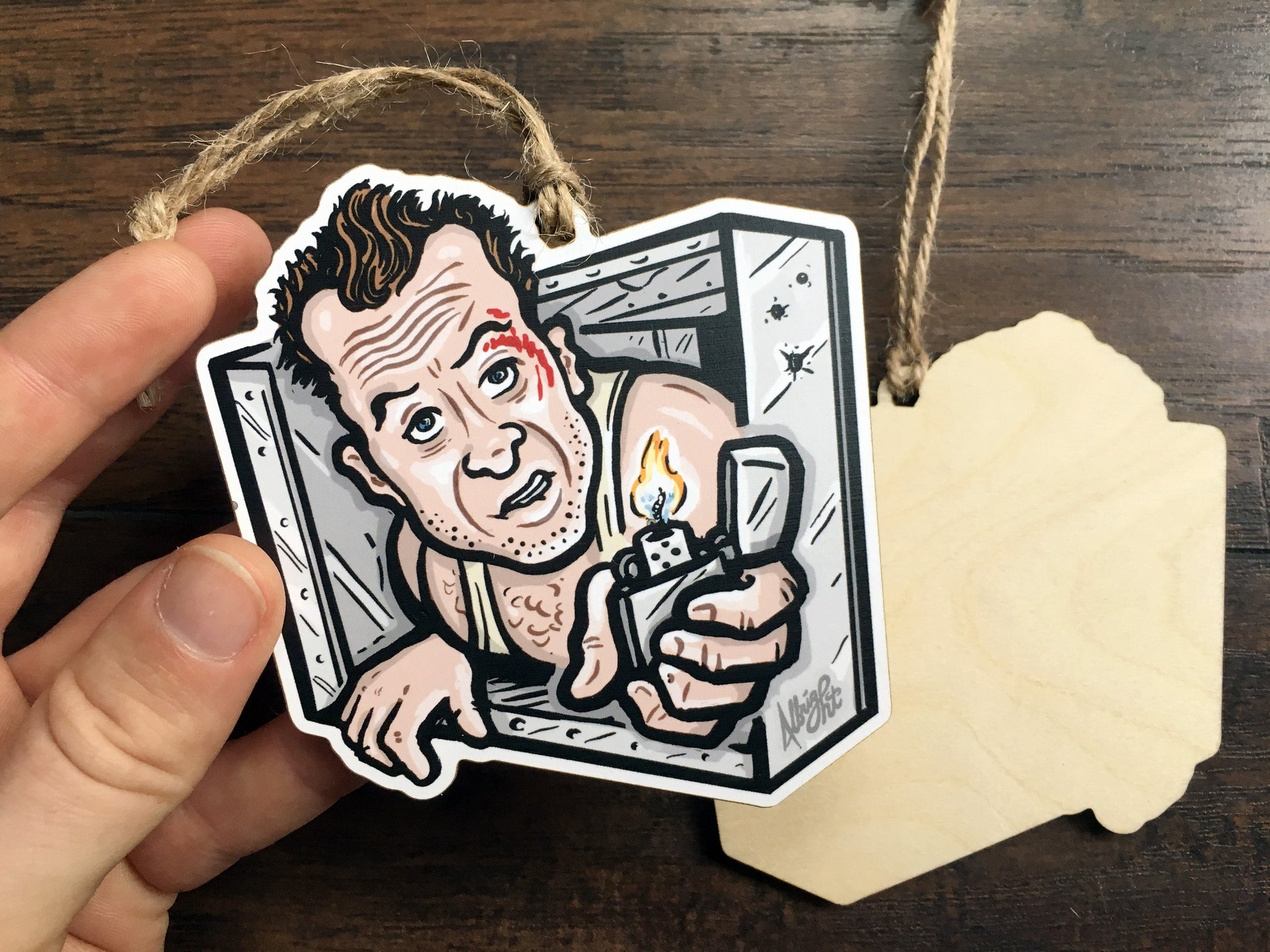 Featuring a custom hand-drawn illustration of officer John Mcclane chillin' in an air vent in the best Christmas movie of all time. Yes, Die Hard IS a Christmas movie! ... Archival printing and precisely lasercut on 1/8” birch wood. to remind you the reason for the season... rewatching Die Hard!